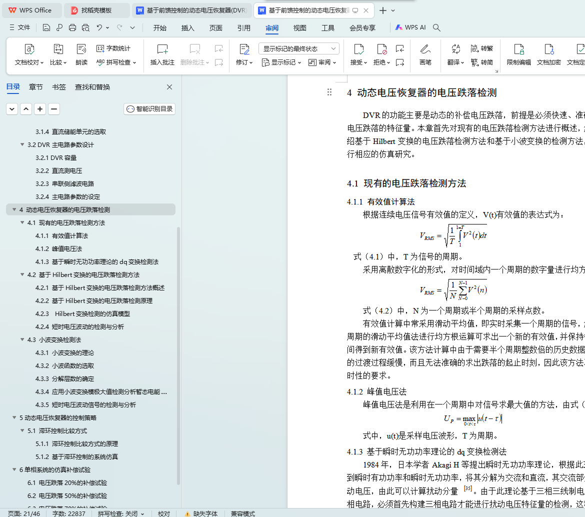 4 动态电压恢复器的电压跌落检测