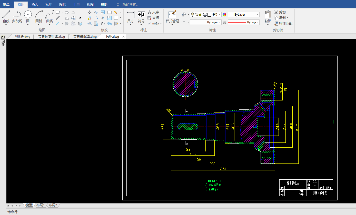 (一)零件的作用三维网技术论坛& P( U2 ]9 C' f$ t' J0 w5 k' \题目所给定的零件为CA6140车床输出轴,其主要作用,一是传递转矩,使车床主轴获得旋转的动力;二是工作过程中经常承受载荷;三是支撑传动零部件。3dportal.cn) K1 c! V2 H7 s. {% k, E(二)零件的材料及其力学性能三维网技术论坛% p/ F s, D: `0 n$ K4 y零件的材料为45钢,是最常用中碳调质钢,综合力学性能良好,淬透性低,水淬时易生裂纹。小型件宜采用调质处理,大型件宜采用正火处理。其价格较便宜,经过调质或正火后可得到较好的切削性能,而且能获得较高的强度和韧性等综合机械性能,局部淬火后再回火,表面硬度可达52HRC-45HRC.