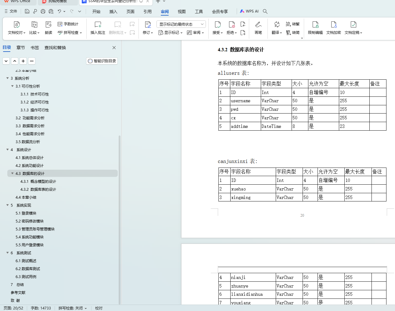 4.3.2 数据库表的设计