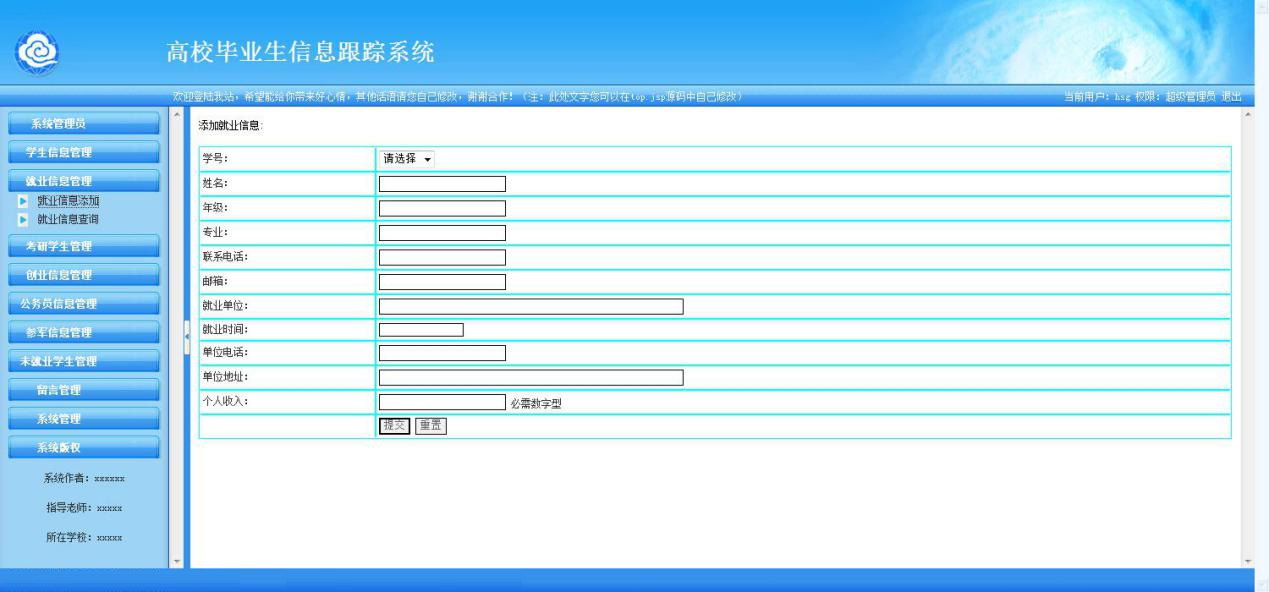 关键字:高校毕业生信息管理系统,jsp编程语言,sqlserver数据库