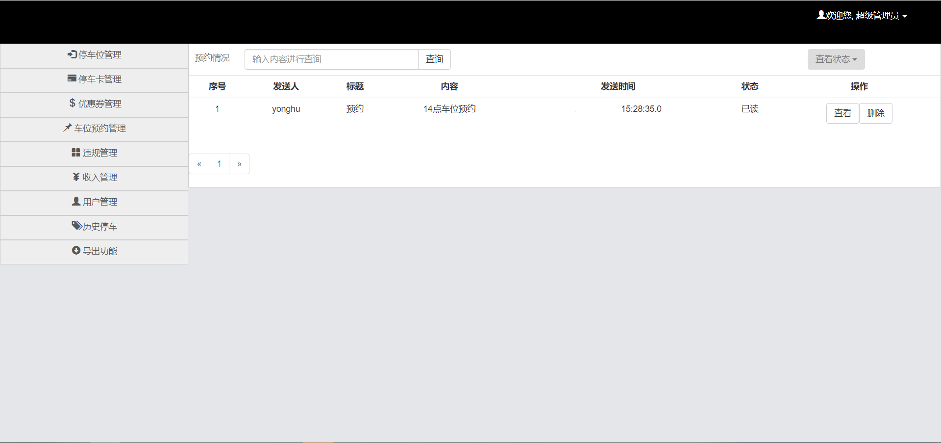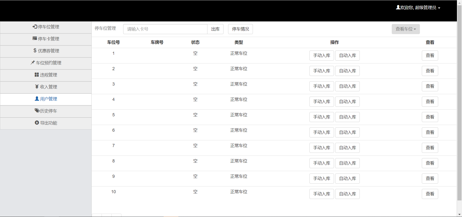 This topic is aimed at the demand subject of parking space management. Based on the mature open-source framework of three web applications spring MVC + Spring + mybatis, Tomcat provides the service support, MySQL provides the data storage support of the system, and designs an intelligent parking lot management system. The parking lot management system improves the intelligence, automation and informatization of the parking lot, reduces the artificial pressure, and also significantly reduces a series of problems caused by personal errors in the manual registration. Through the parking lot management system, on the one hand, it can save the tedious manual registration, and also can save a large amount of personnel expenditure, and it is also conducive to increase the security of tracking query after problems occur. The system has flexibility and expansibility at the same time.