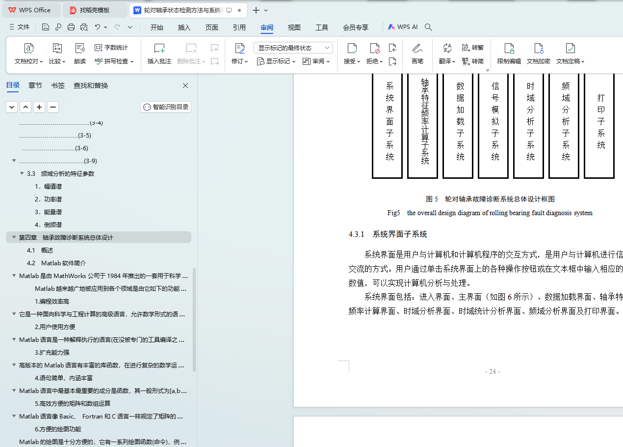 本论文按照预定的要求完成了设计任务,研究了轮对轴承的故障诊断方法,完成了故障诊断系统的设计,通过仿真验证了轮对轴承的故障诊断方法。