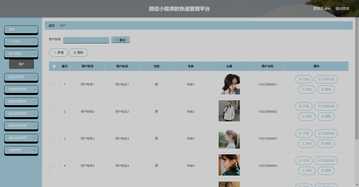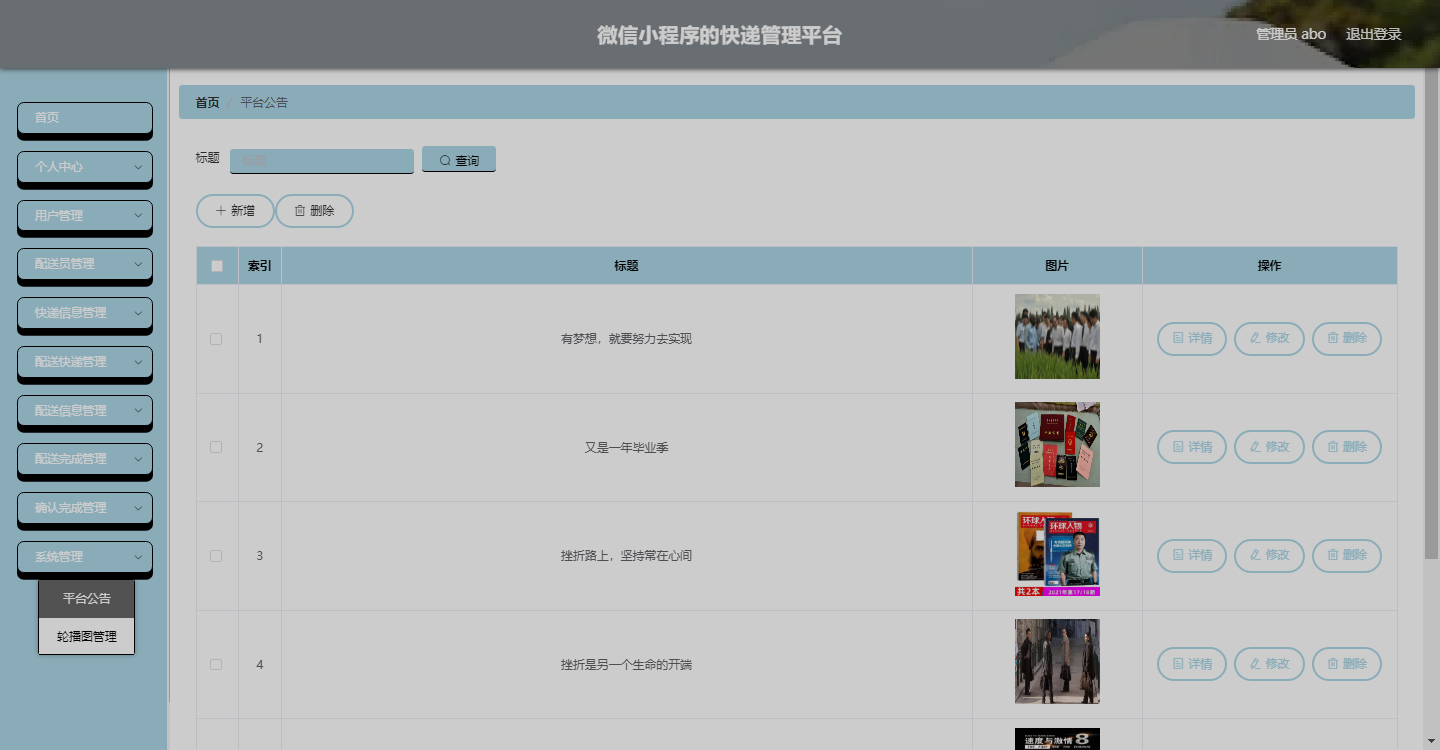 Key Words:Express Management Platform Based on wechat applet; Wechat applet; Java; MySQL