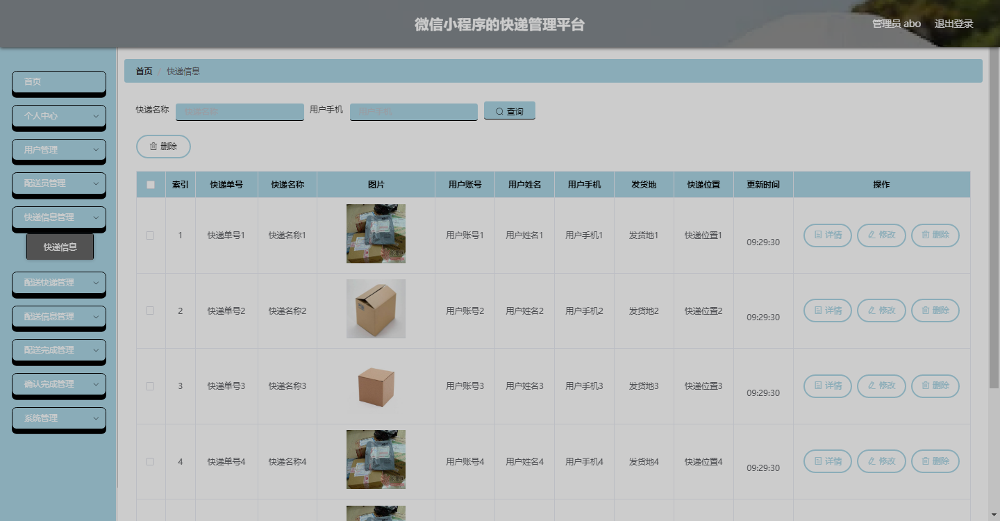 With the rapid development of society, it is perfect to use computer application to realize data management function. However, with the advent of mobile Internet, information processing is no longer limited by geographical location. Information processing is timely and efficient, which is loved by people. Therefore, major Internet manufacturers are aiming at the trend of mobile Internet and making major layout. After years of scouring the sand, various mobile operating systems have been launched continuously. At present, wechat applet has the highest market share. This time, a set of express management platform based on wechat applet is developed, including administrators, users and distributors, which realizes personal center and user management, Dispatcher management, express information management, express delivery management, distribution information management, distribution completion management, confirmation completion management and system management. The express management platform based on wechat applet uses the website background developed by java on the server side to receive and process the JSON data transmitted from wechat applet side. The database uses MySQL database as the storage of data. In this way, users can use it conveniently and quickly. They all conduct business processing through the same background, and the background can make deployment according to the amount of concurrency, cooperate with hardware and software, meet the interactive processing of data, make the user's data storage safer and get the data more convenient.