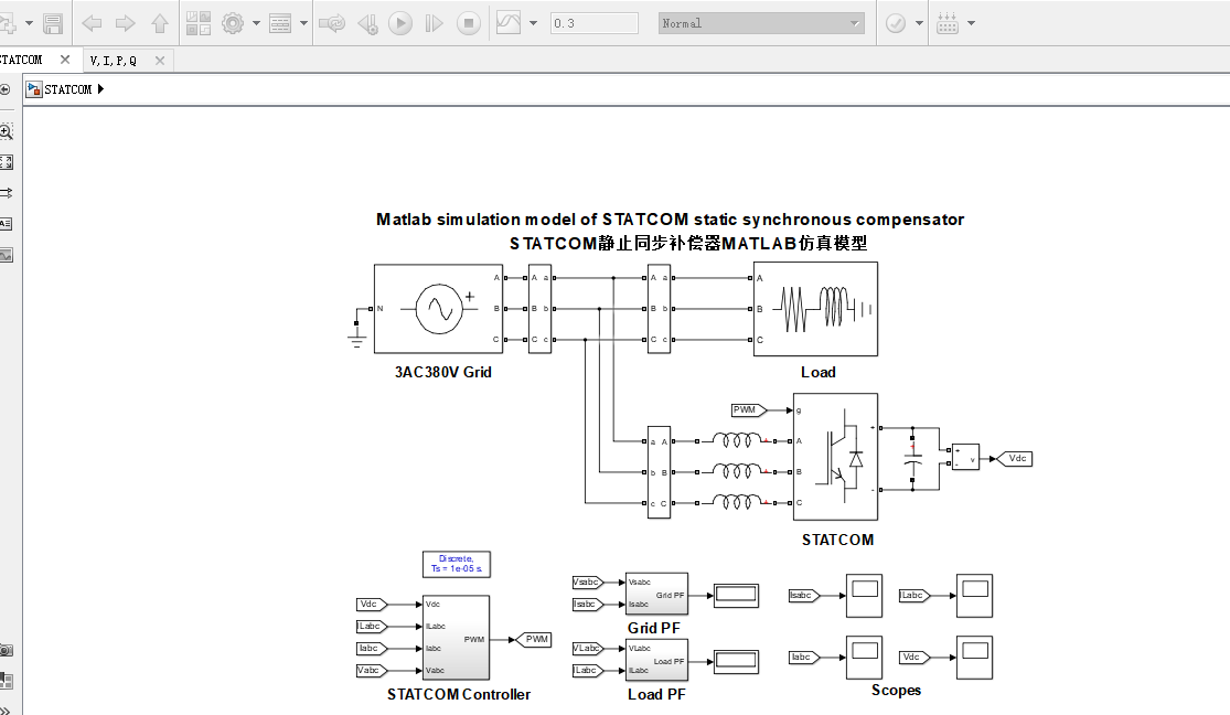 首先,本文针对H-C STATCOM系统设计中的关键问题之一,即无功电流的实时检测,介绍了基于p、q运算方式的无功电流检测方法、基于ip、iq运算方式的无功电流检测方法和无锁相环的三相电网无功电流检测法这三种无功电流检测方法的原理,并在MATLAB/simulink中进行了仿真验证,然后对比分析了它们在三相四线制电网负载不平衡和三相电压有频率偏移和畸变的情况下,实时检测无功分量的能力。