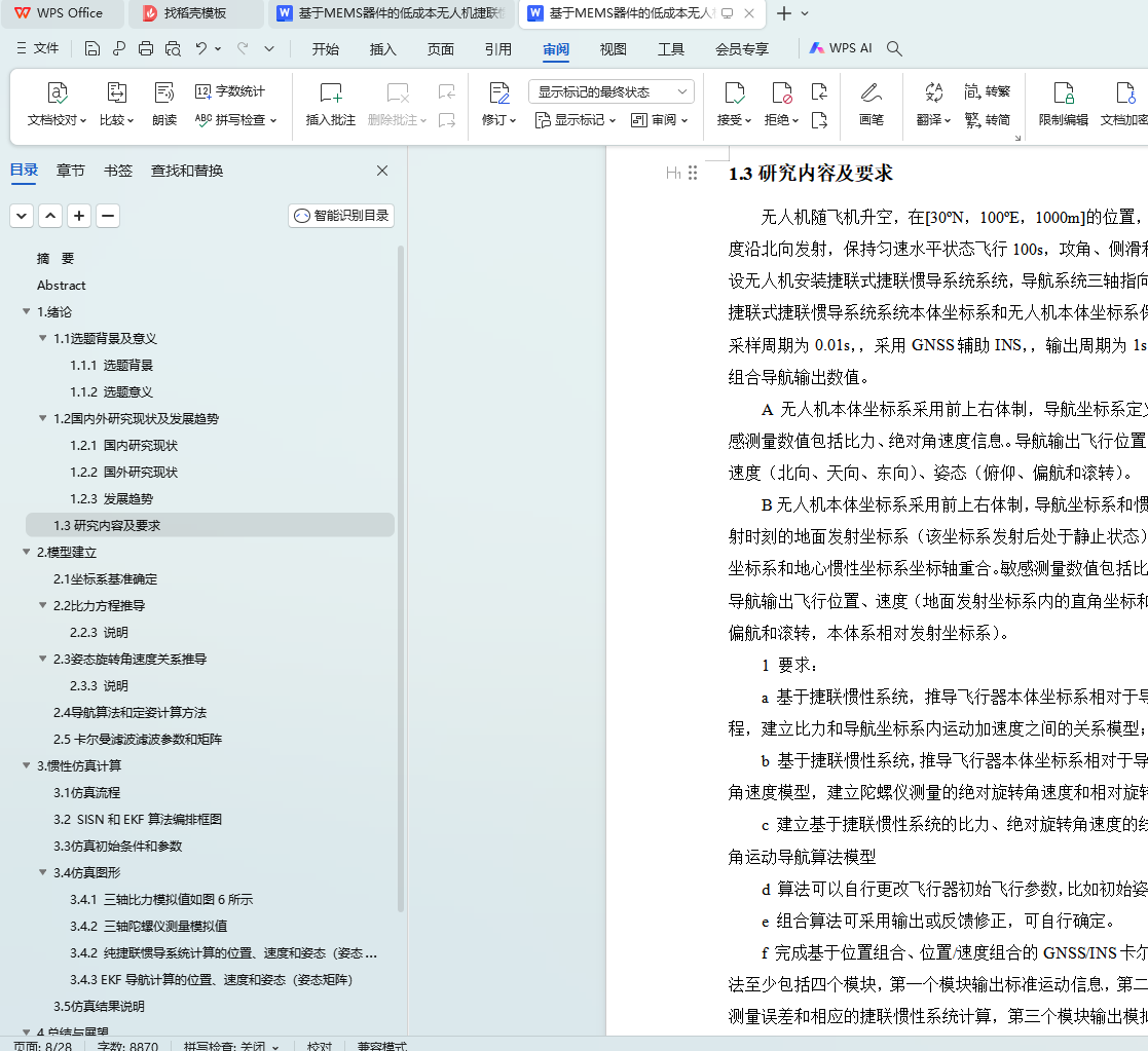综上所述,基于MEMS器件的低成本无人机捷联惯导系统设计选题来源于无人机技术发展的实际需求,结合了MEMS器件和STM32主控板的优势,以及捷联惯导算法和滤波算法的应用,旨在开发一种性能优良、成本低廉的无人机导航系统,满足市场和技术发展的需要。