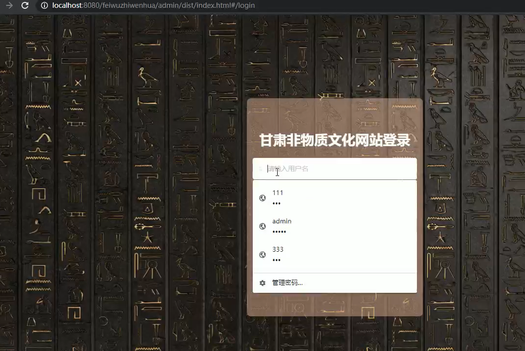 关键词:甘肃非物质文化网站;VUE框架;Mysql;自动化