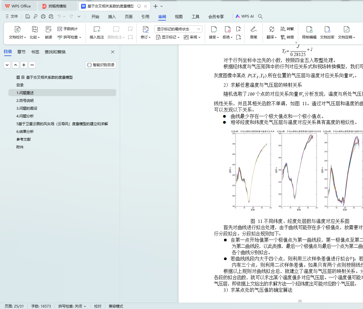 对于问题四:对非单调的气压层与温度函数进行了分段拟合求解。根据气压层温度曲线特性和气压不能突变原理,建立了气压层全局匹配模型。根据此模型就可以得到给定经纬处的气压值。