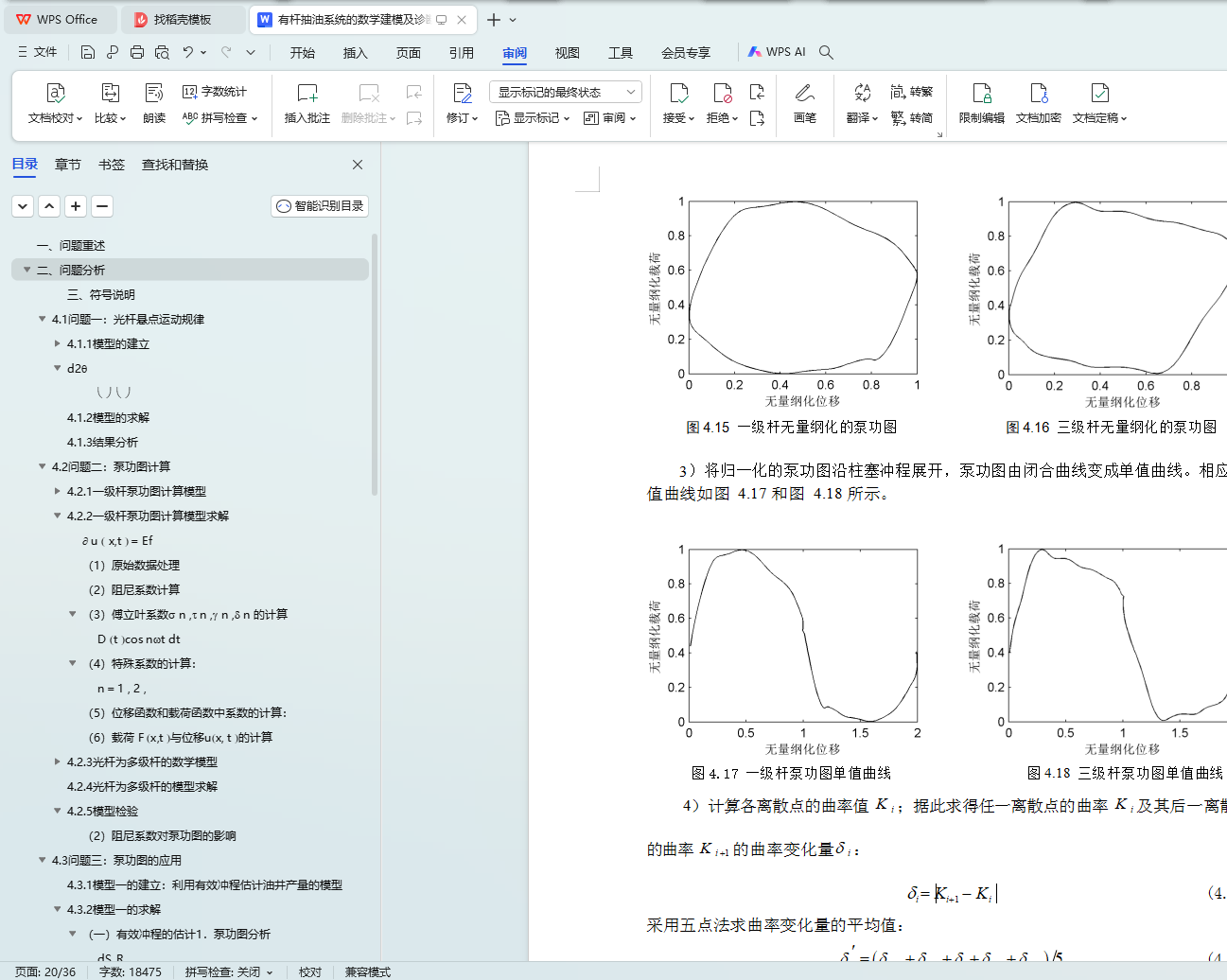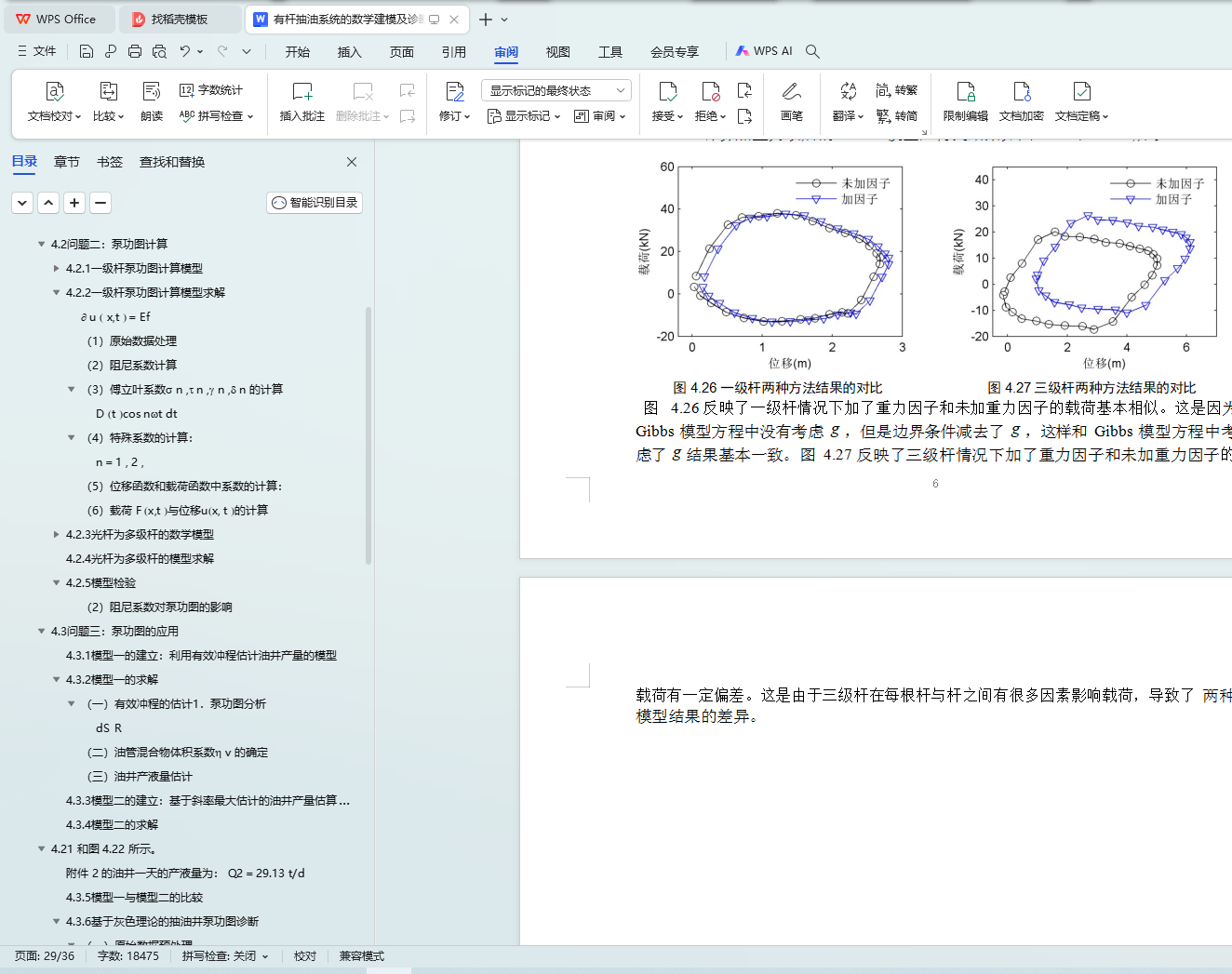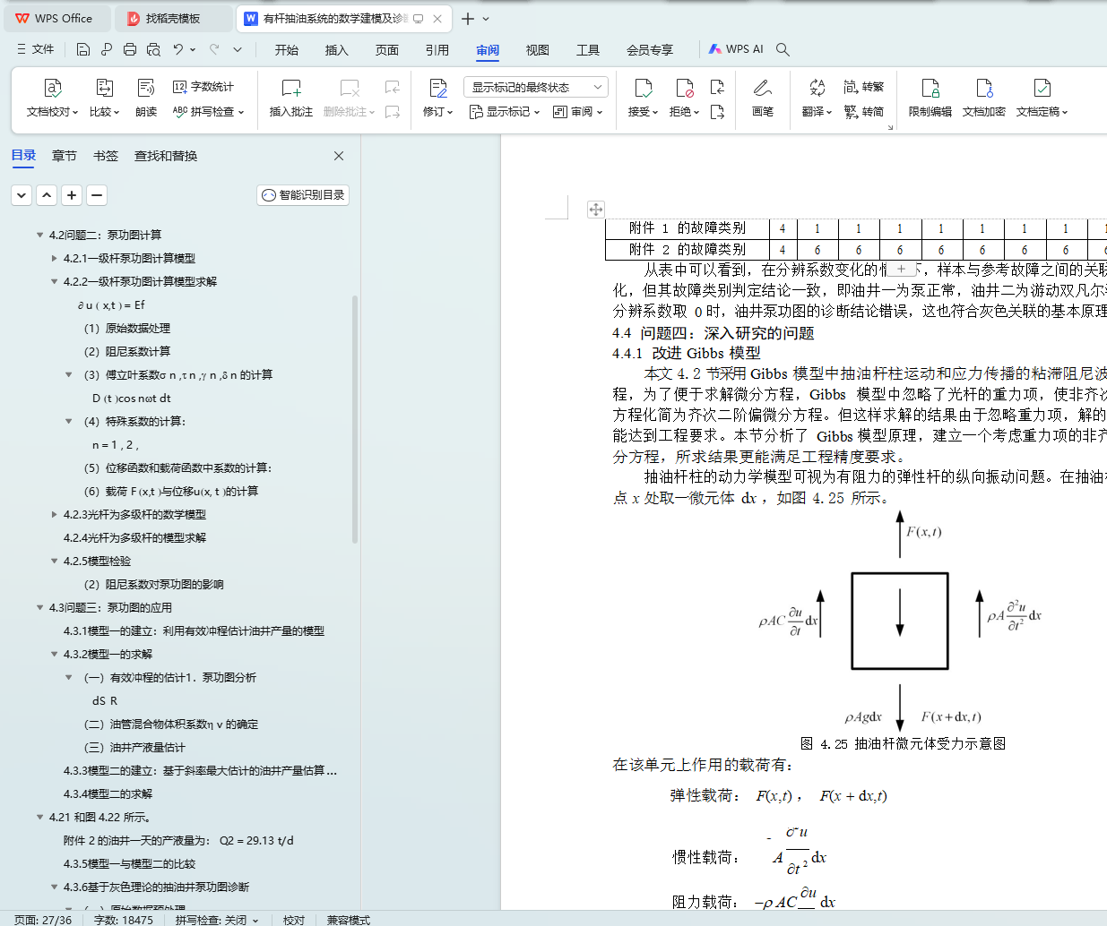 在问题的解答过程中,我们对理论的正确性、模型的稳定性和算法的合理性进行 了深入的研究。比如:将一级杆泵功图转化模型扩展到多级;在改进的 Gibbs 方程中考虑了重力项,对非齐次微分方程进行了详细的推导和求解;利用 Gibbs 模型反向推导阻尼系数的具体过程;以及模型的稳定性检验工作等。