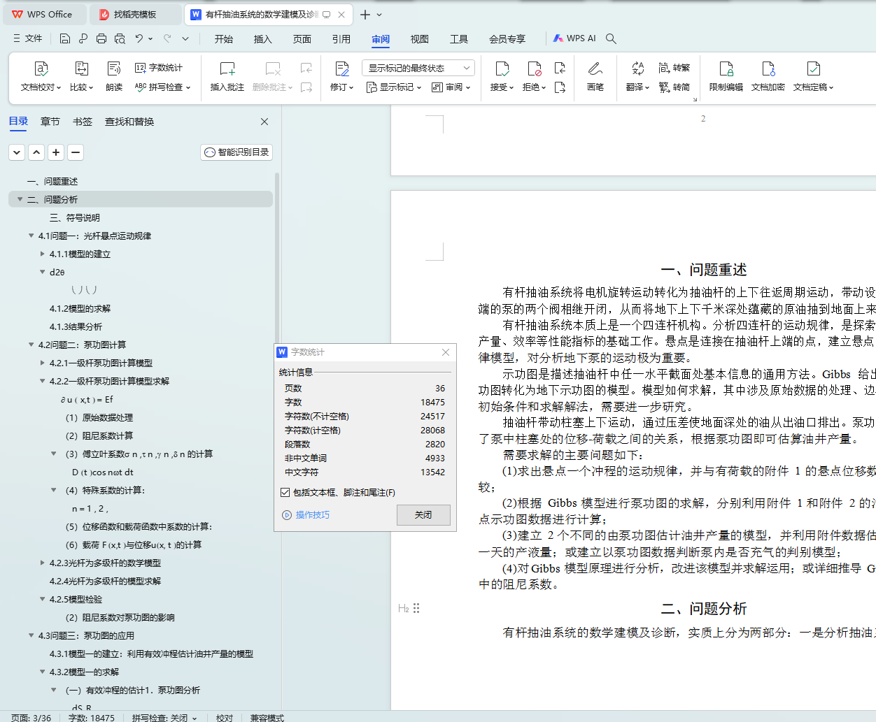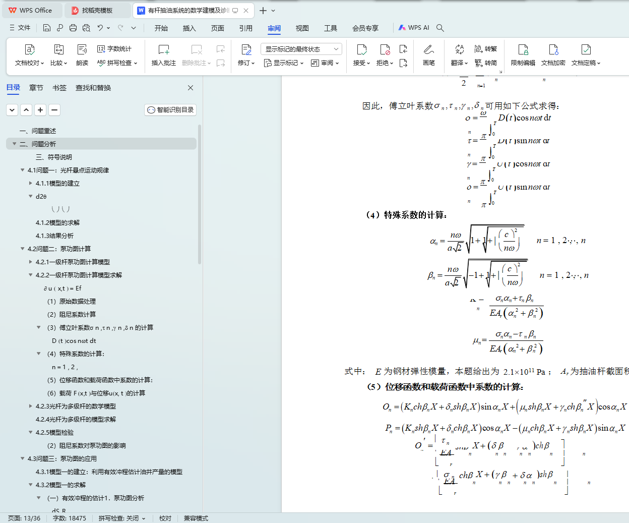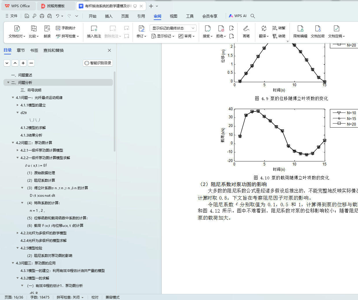 在问题的解答过程中,我们对理论的正确性、模型的稳定性和算法的合理性进行 了深入的研究。比如:将一级杆泵功图转化模型扩展到多级;在改进的 Gibbs 方程中考虑了重力项,对非齐次微分方程进行了详细的推导和求解;利用 Gibbs 模型反向推导阻尼系数的具体过程;以及模型的稳定性检验工作等。
