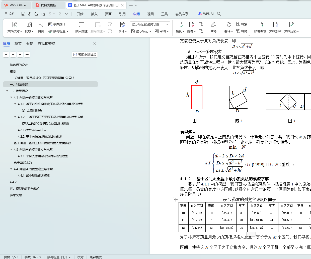 针对问题一,在只考虑储药柜竖向隔板的最小间距种类,在满足安全送药的四个条件,即侧间距2mm,无并排,无侧翻,无水平旋转下,建立单目标优化模型,并设计区间无重叠聚类算法,实现最少间距种类的求解,由程序得到最少四类列宽的分类,分别为