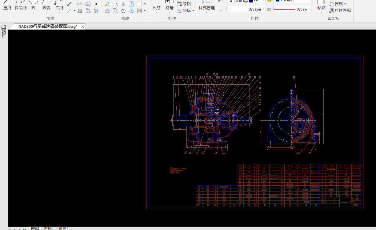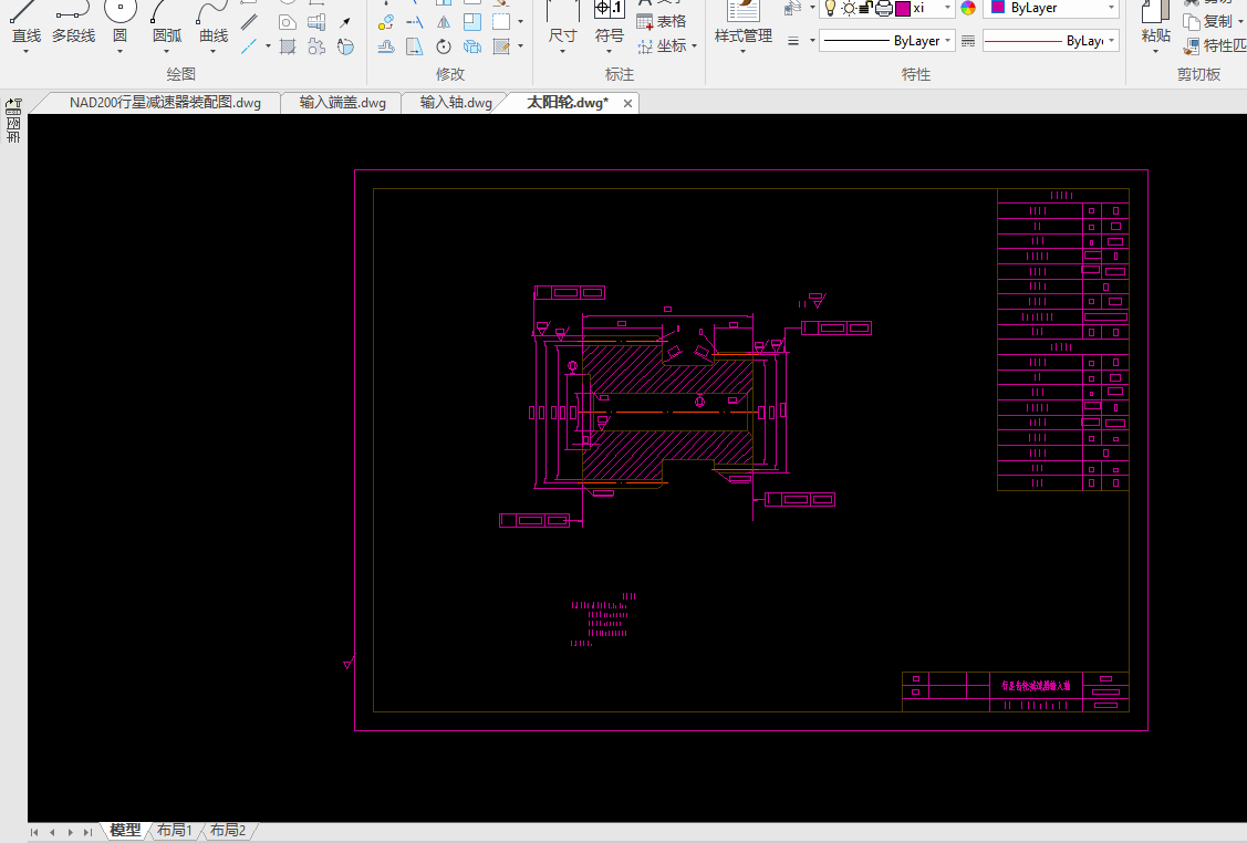 本文设计的题目是 NAD200 行星减速器的设计及仿真。NAD200 行星减速器是 NGW 行星减速器的一种,NAD200 减速器主要适应冶金、电力、水泥、建筑、建材、能源等行业,对于工业的进步发展有着重要的作用。本研究的目的在于按照一定的要求的 设计出一种结构合理的行星减速器,并用软件模拟安装及工作过程,实现行星减速器 的计算机辅助设计,提高设计效率。