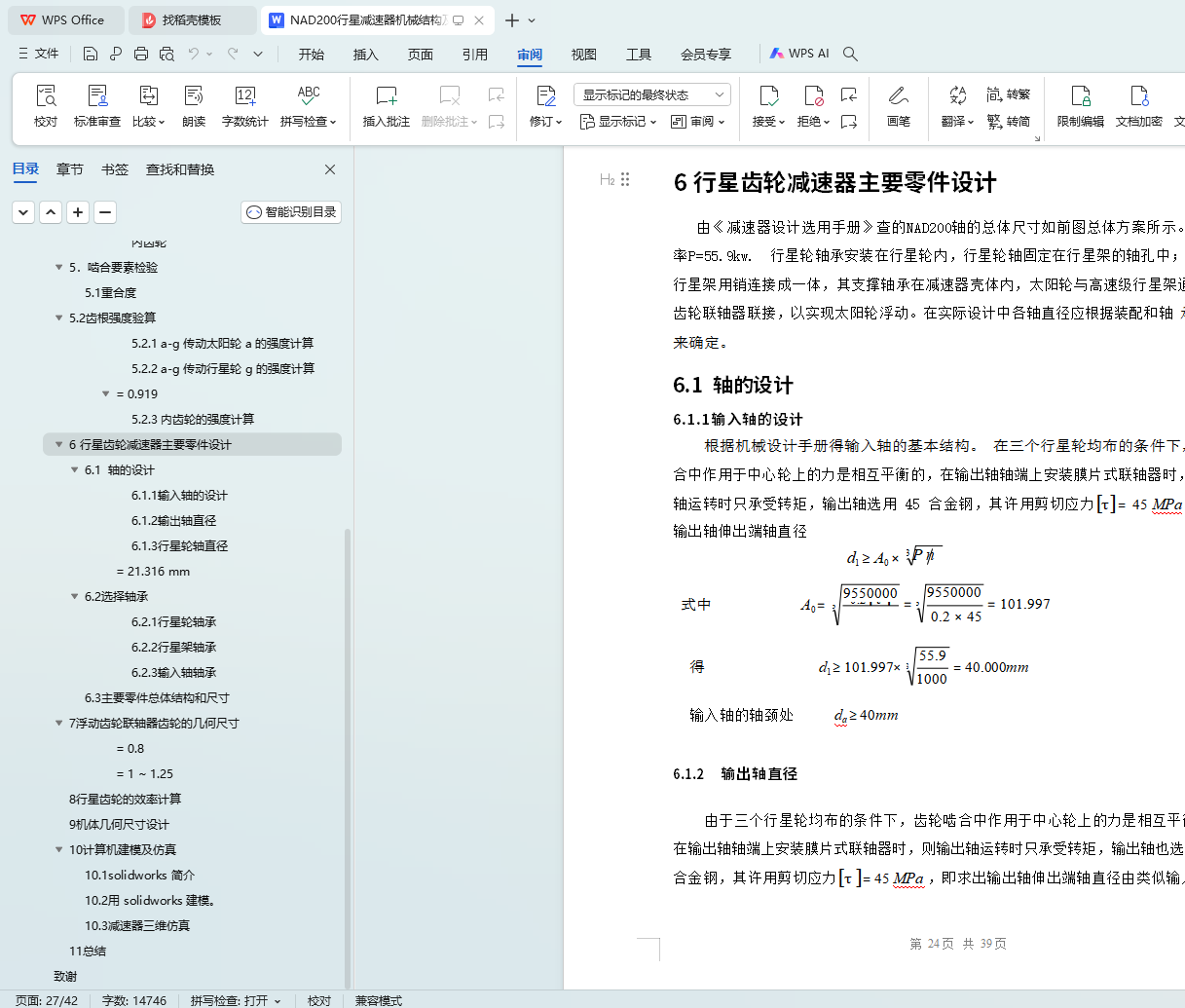 6.1.3行星轮轴直径 25