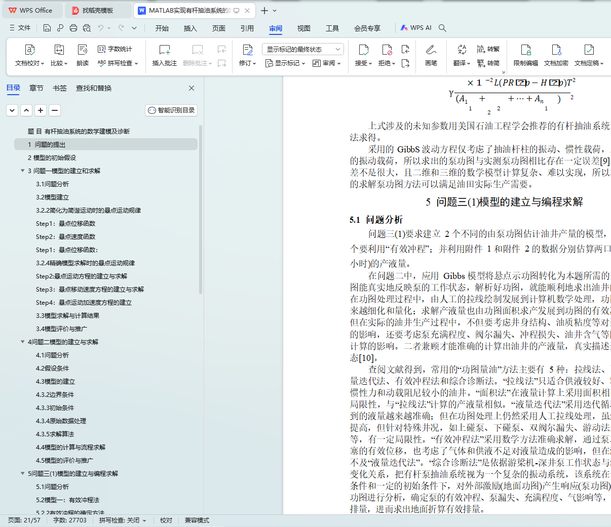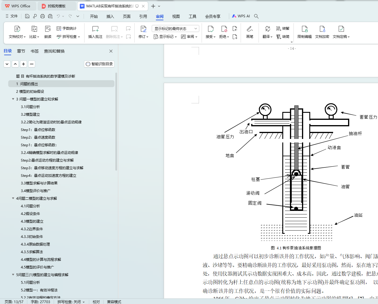 本文是一个研究有杆抽油系统的建模及诊断问题。