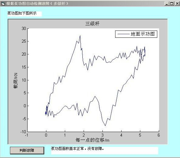 针对问题三(2),本文从新的角度提取泵功图特征:首先对泵功图进行预处理,并提取泵功图的直观几何特征。计算功图总面积并与标准功图面积对比, 然后分区域计算面积,按区域面积特征再对故障进行分类,最后再由曲率、拐点(固定阀游动阀的开启、关闭点)等特征细化故障类型,得出最终结论。根据本思路列方程及其边界条件,利用 Microsoft Visual Basic 6.0 编程计算,并根据判定条件进行自动诊断,本程序可以诊断出基本正常、严重漏失、供液不足和气体影响等情况,故障时报警提醒,使用简单方便。经计算机自动诊断,附件中给出的一级杆和三级杆均没有气体影响。