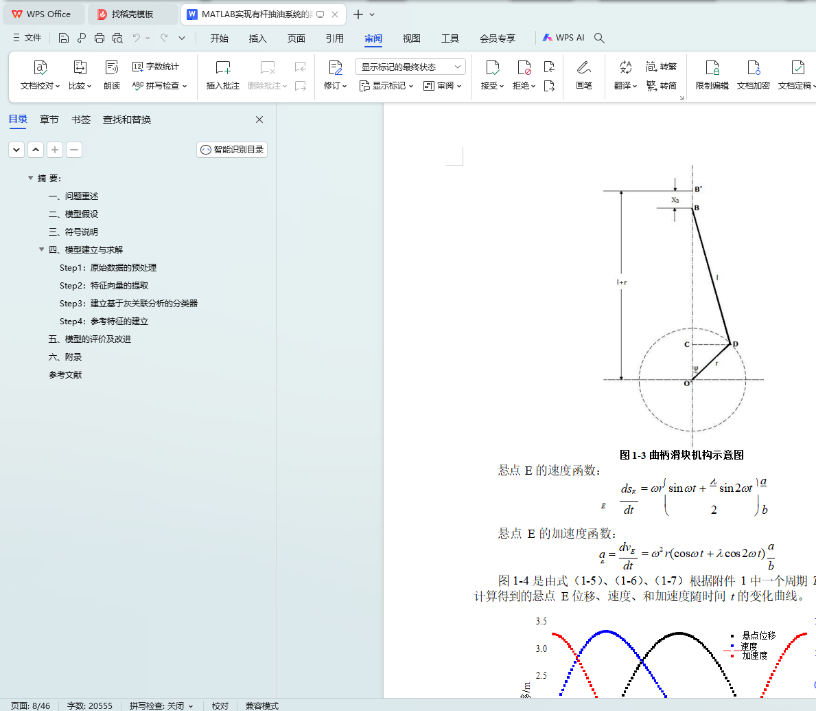 问题一,本文通过对现有的简谐运动悬点运动模型、曲柄滑块悬点运动模型和四连杆机构悬点运动模型的评价与分析,得出在悬点上死点的位置模型位移与实际位移数据相差最大,而在悬点下死点的位置模型计算位移与悬点实际位移基本吻合,这说明在悬点逐渐达到上死点的位置时,有杆抽油系统的动载荷对悬点的位移影响最大。因此本文针对此情况,建立了考虑动载荷影响的悬点运动规律模型。