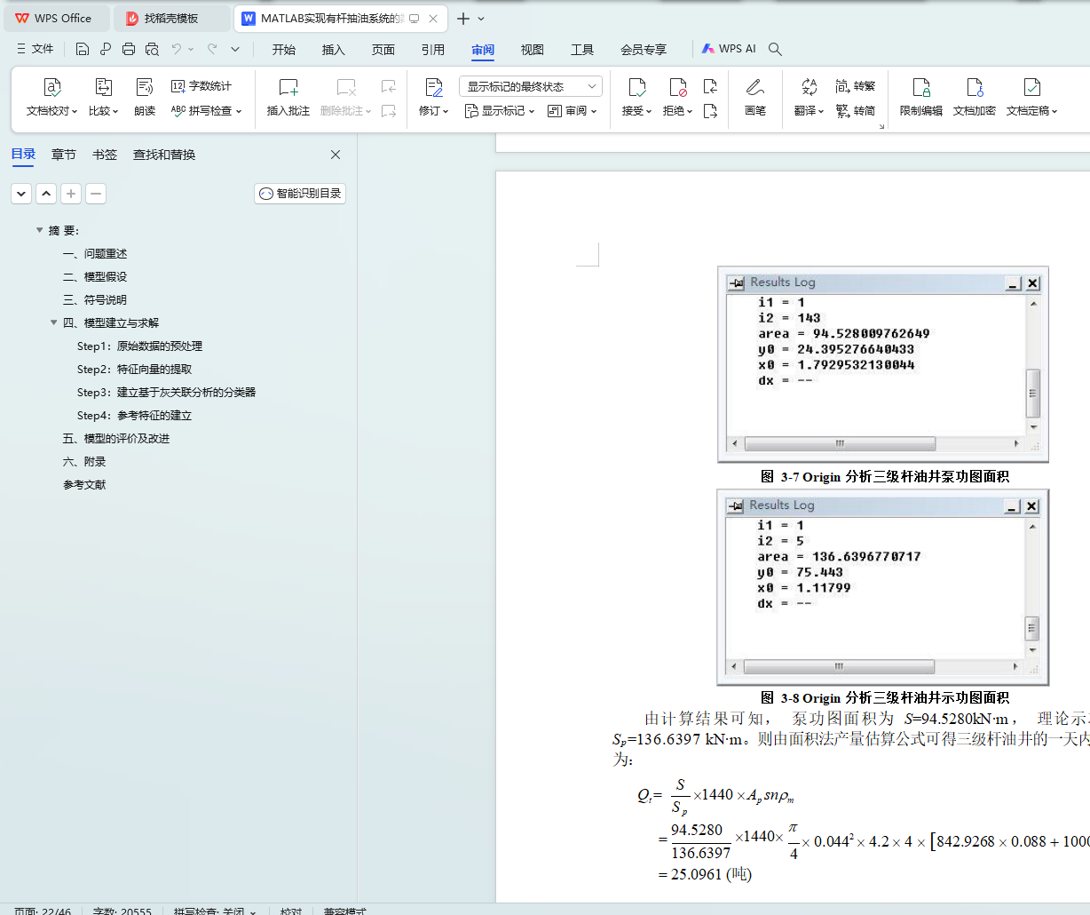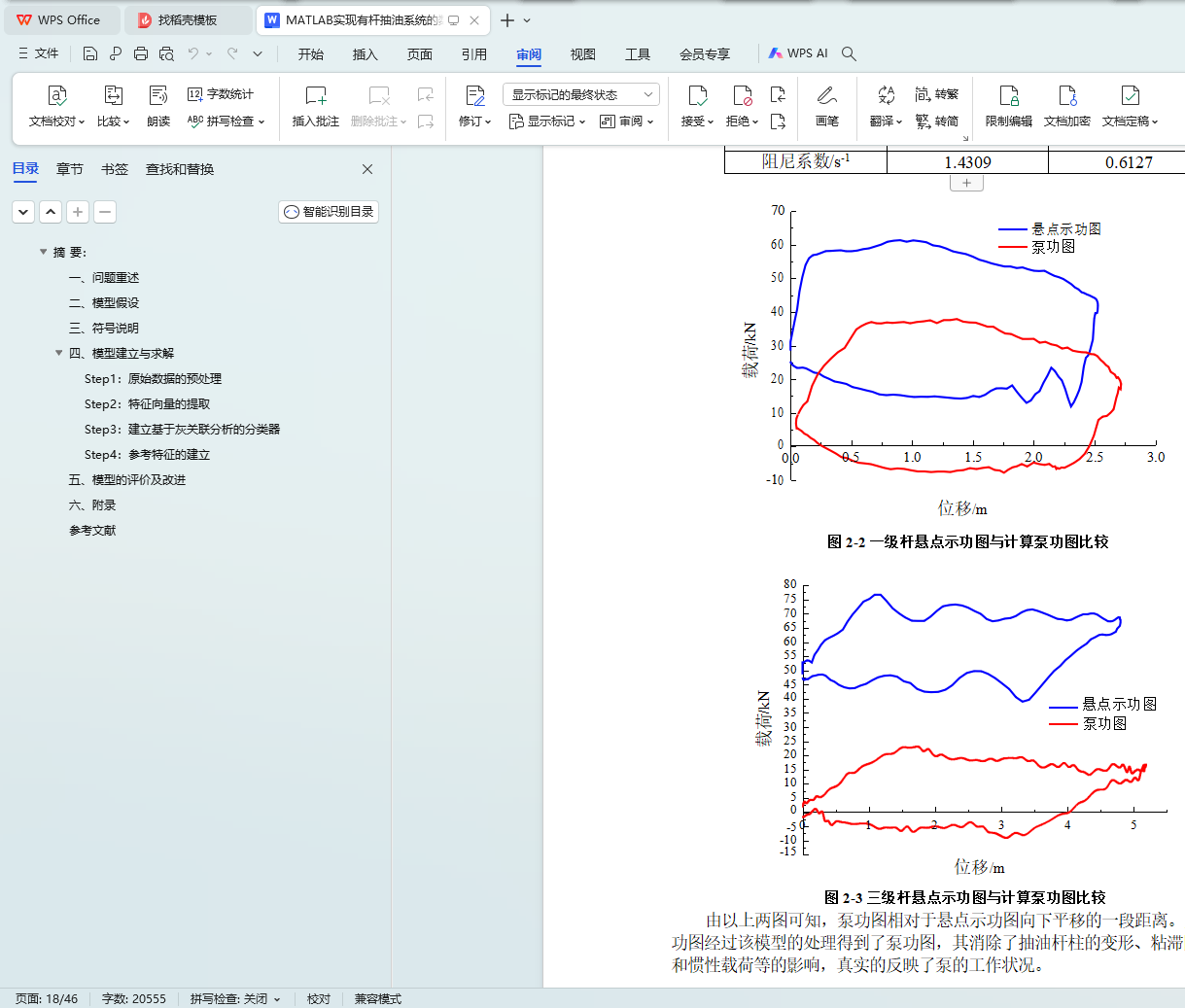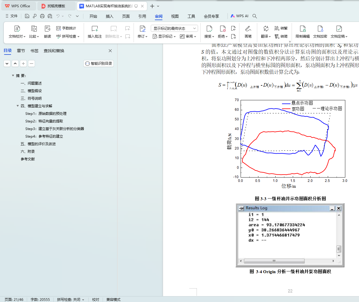 问题三,通过对泵功图的研究可以得到有杆抽油系统的工作状况,其中油井产液量的估算就是其应用之一。本文采用 Origin 软件,通过对泵功图的图形研究,建立了两种估算油井产液量的数学模型。并进行了模型的对比分析,发现有效冲程数学模型能够较为准确的反映油井的产液量。同时通过文献调研研究,建立了基于灰色理论的抽油井泵功图诊断模型。