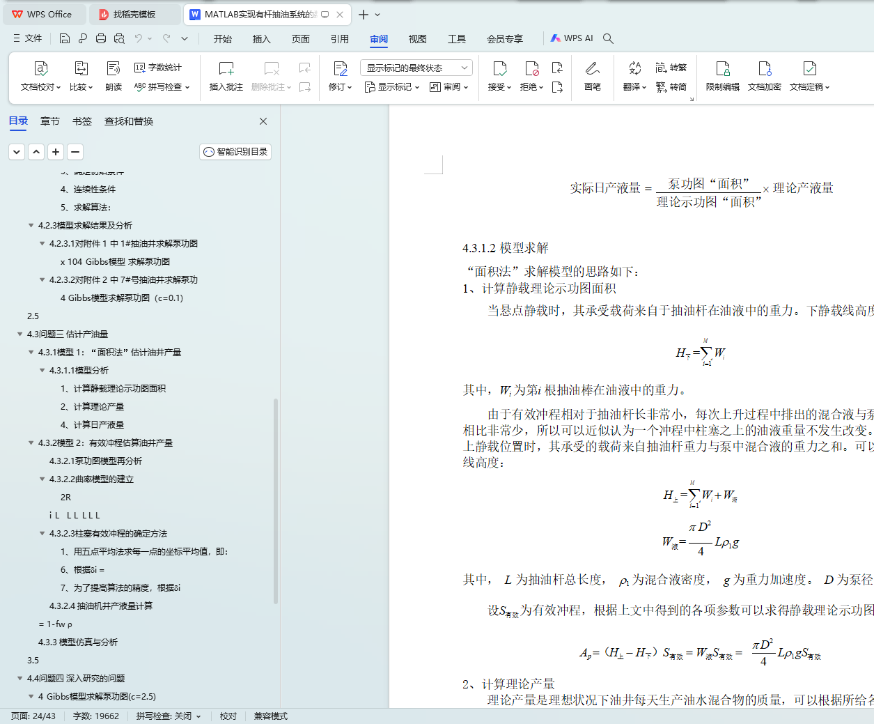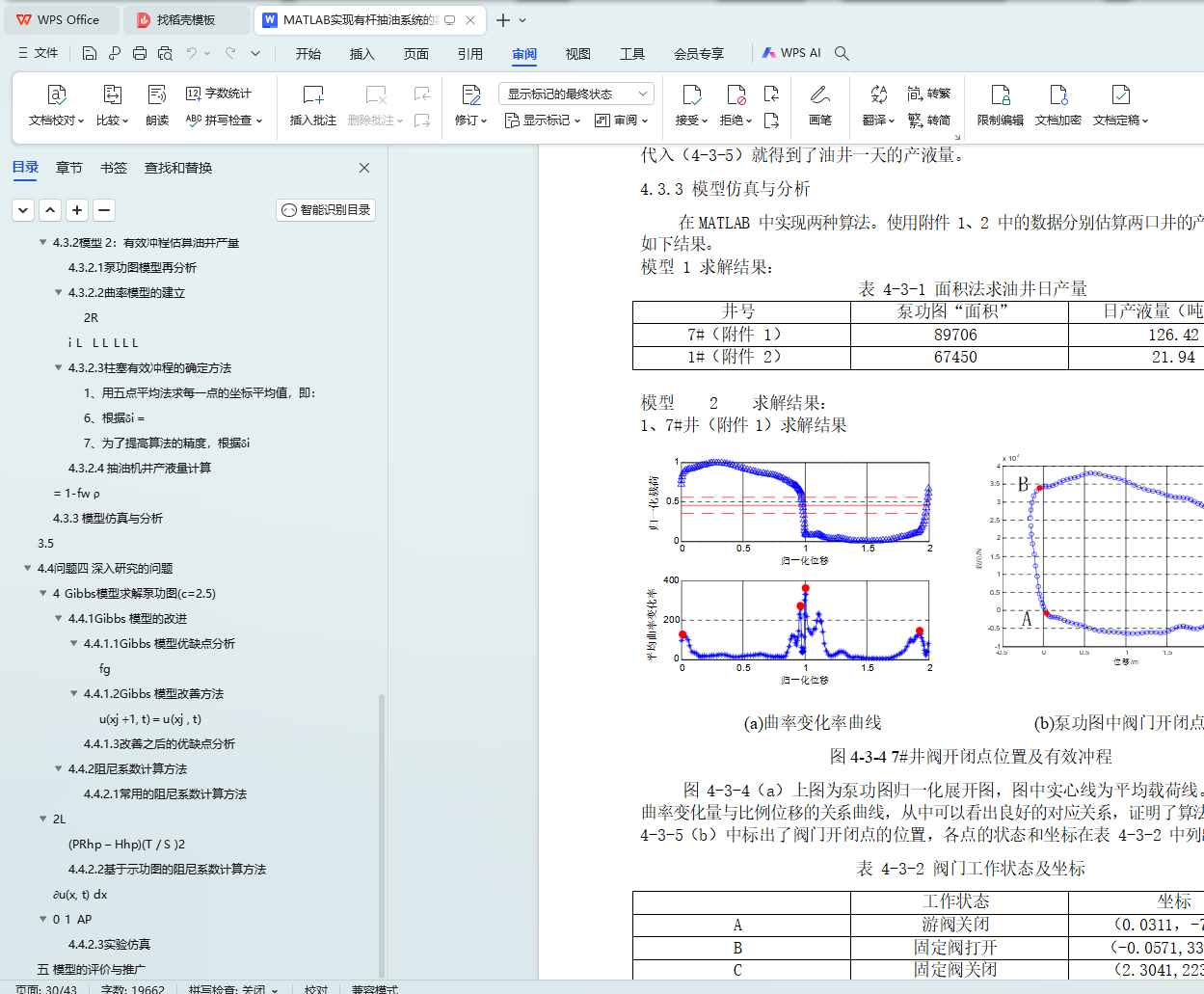 MATLAB 仿真,对附件 1 中 7#井和附件 2 中 1#井的日产液量进行估算。对于 7#井,用面积法求得日产量为 126.42 吨,用有效冲程计算日产量为 89.34 吨;对于 1#井,用面积法求
