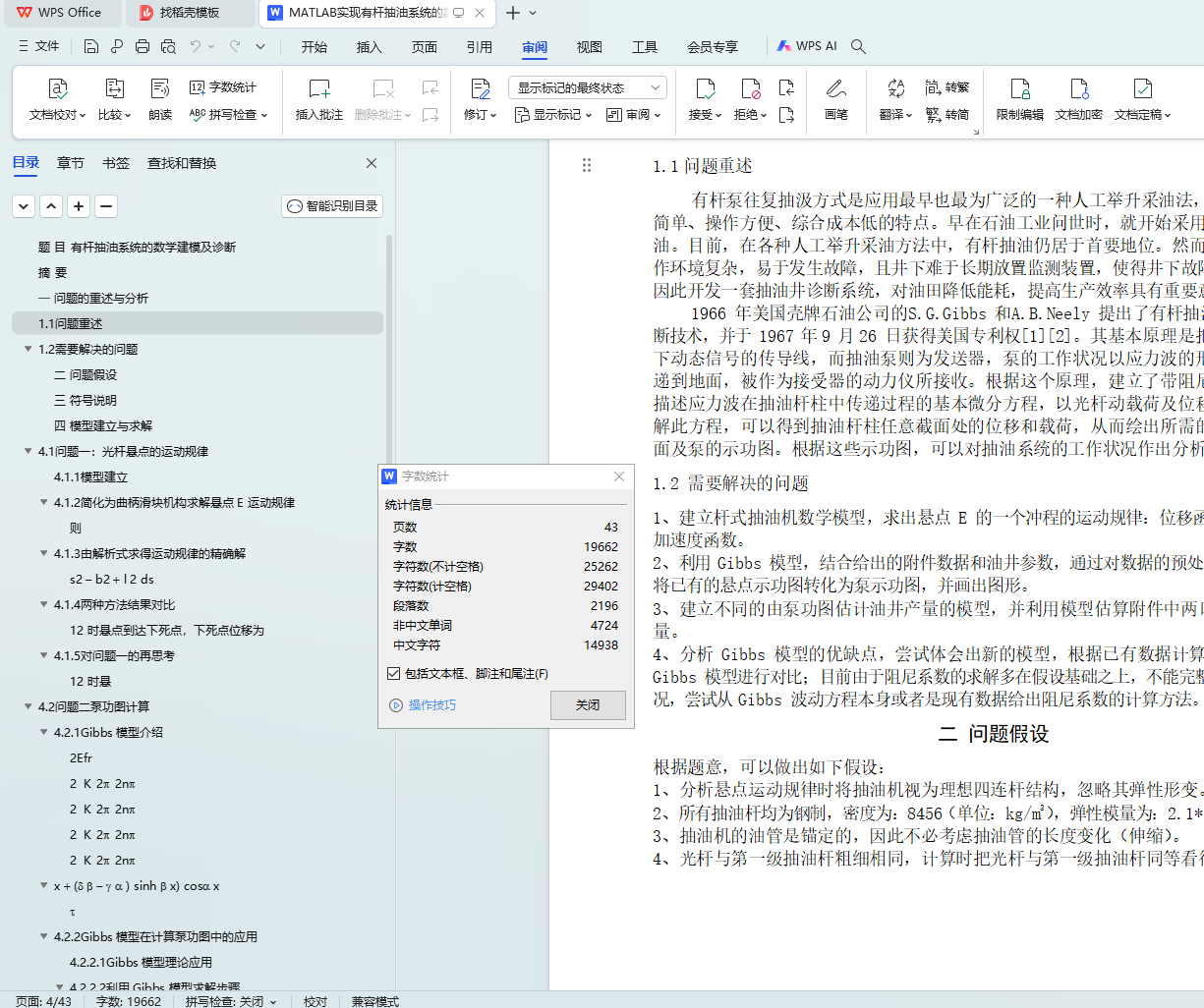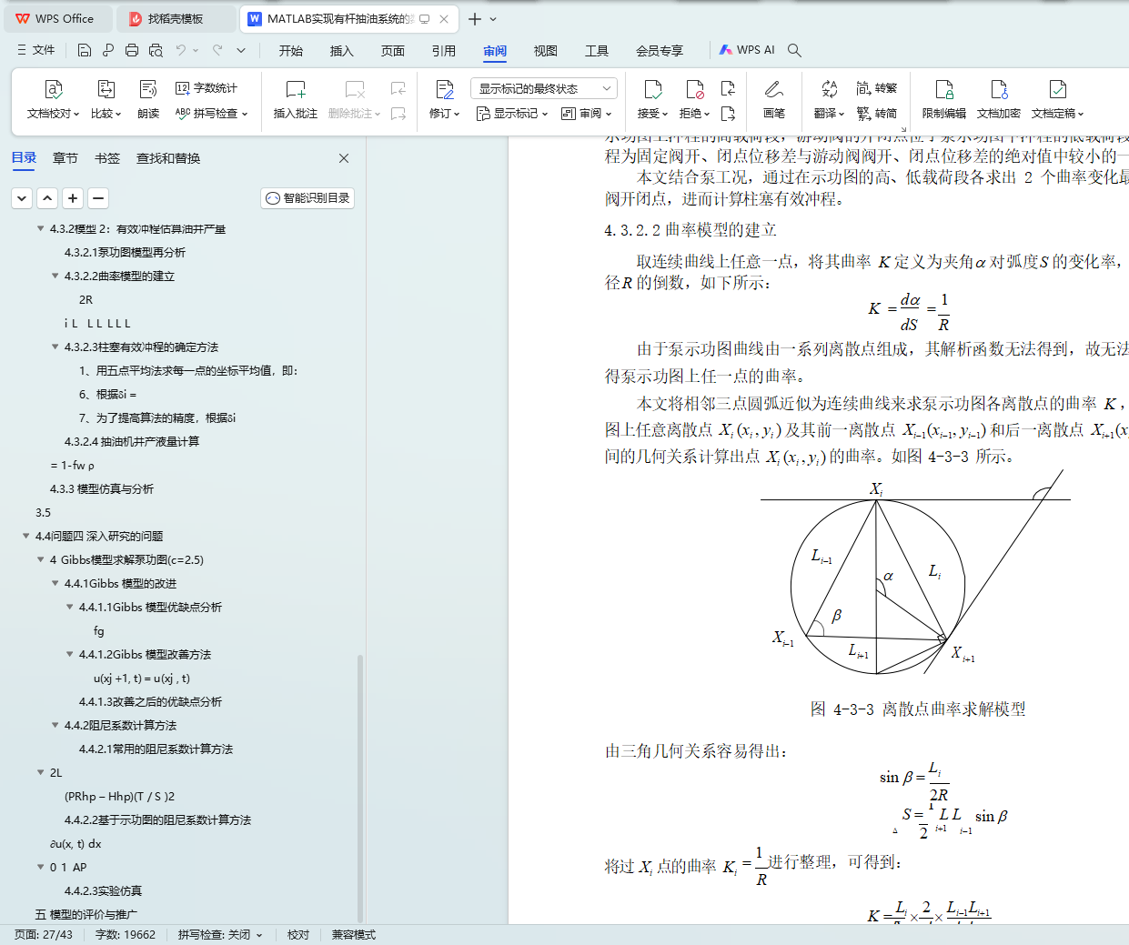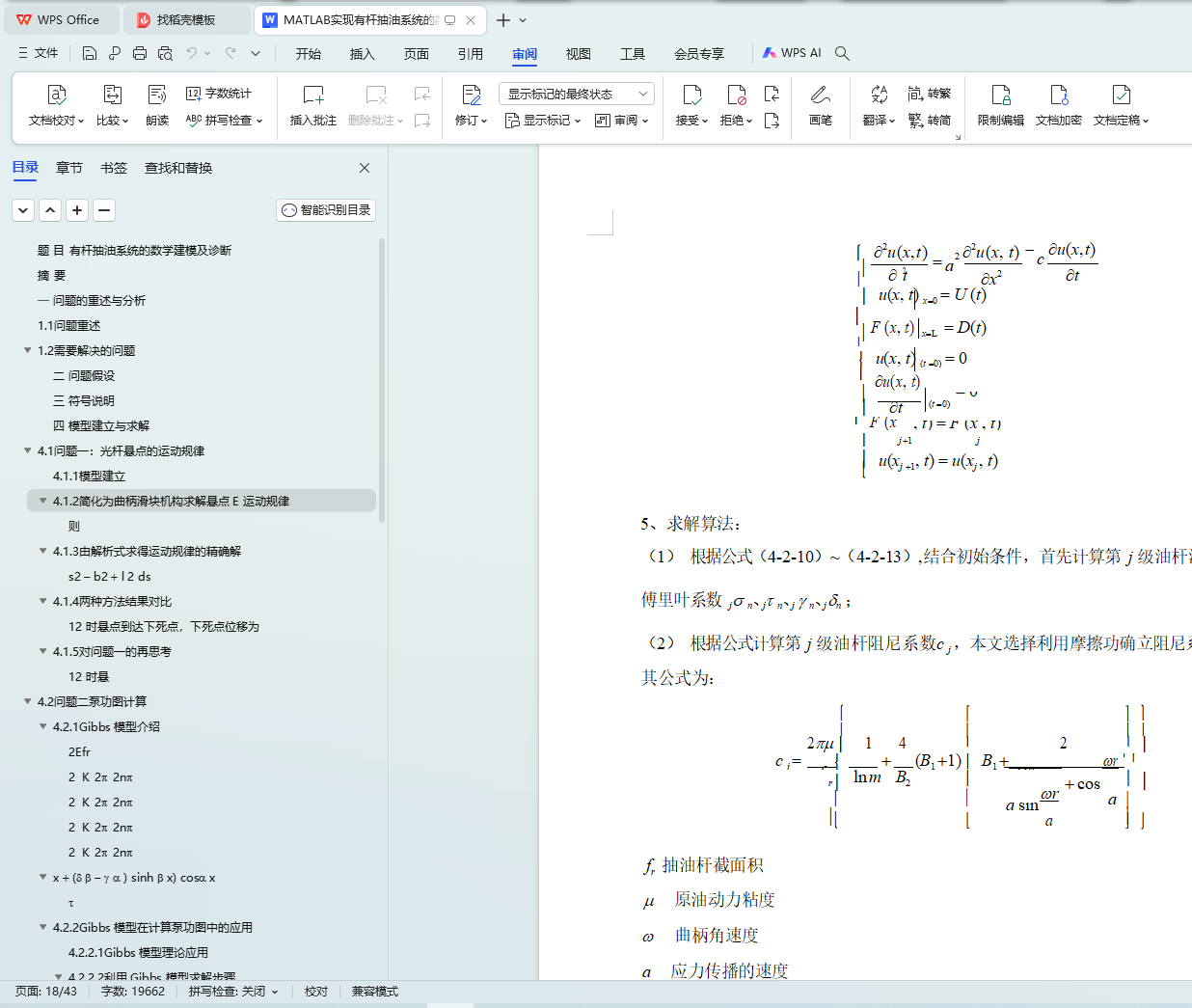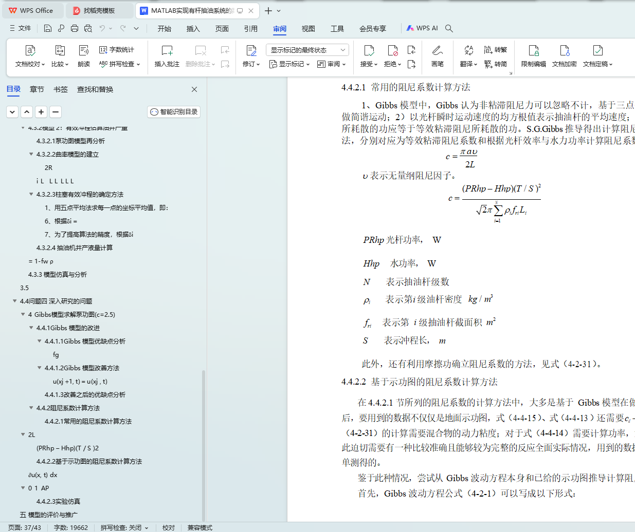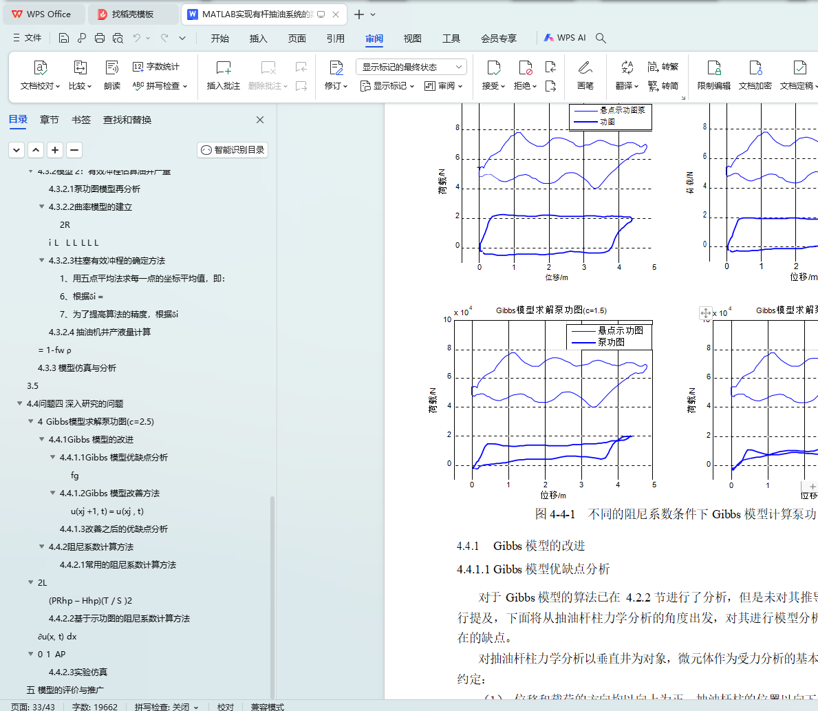 2 中的数据带入,求解得出了阻尼系数分别为 1.0341 s-1 、0.3395 s-1 。关键词:四连杆模型 Gibbs 模型 泵功图 日产液量估算 阻尼系数