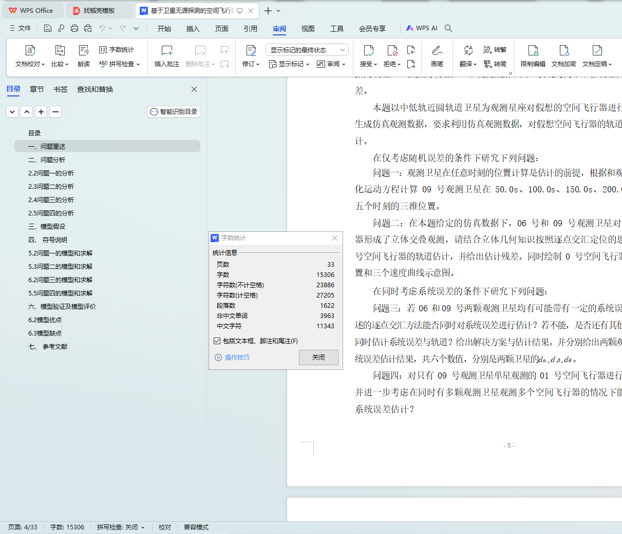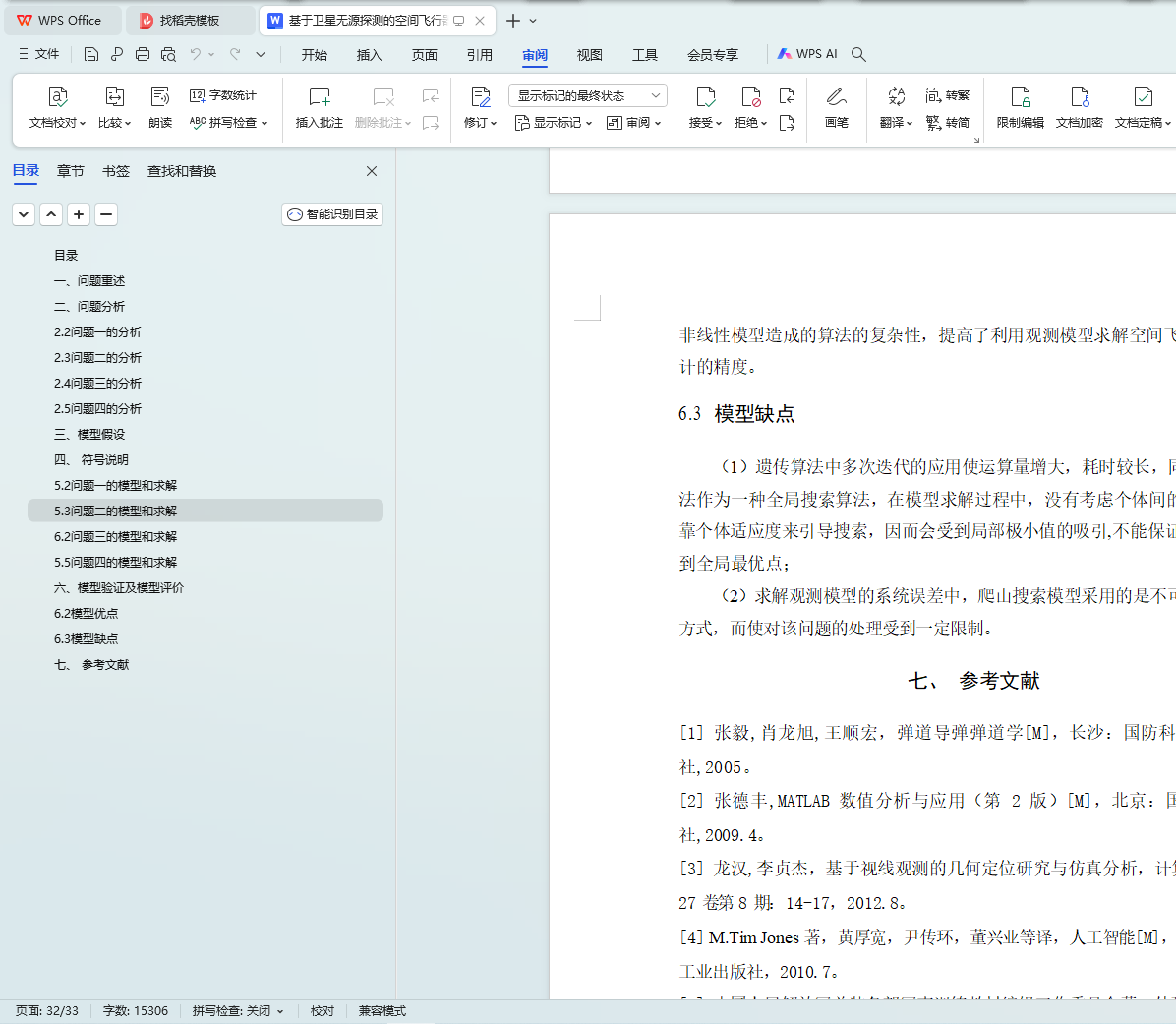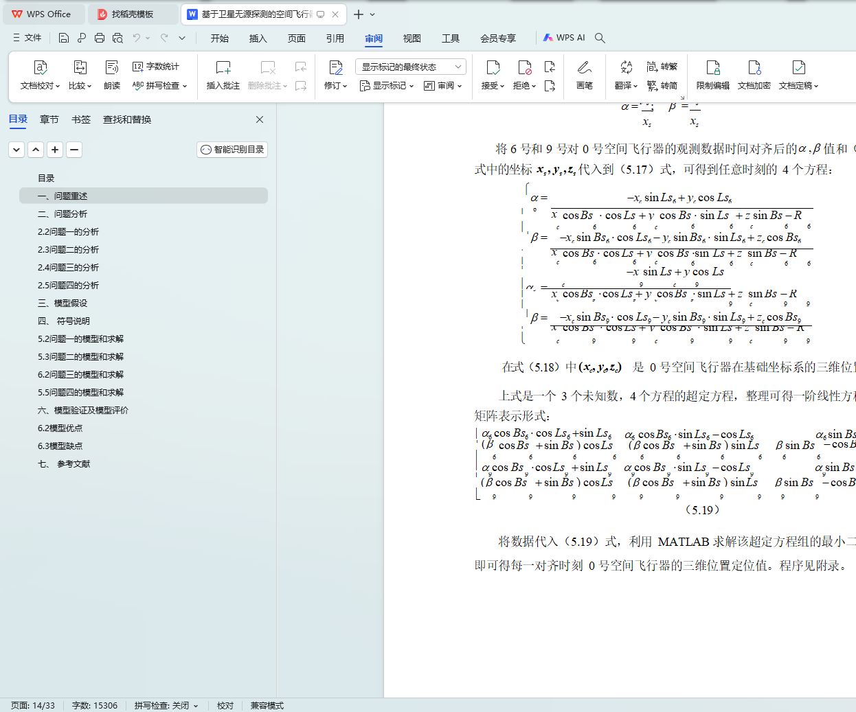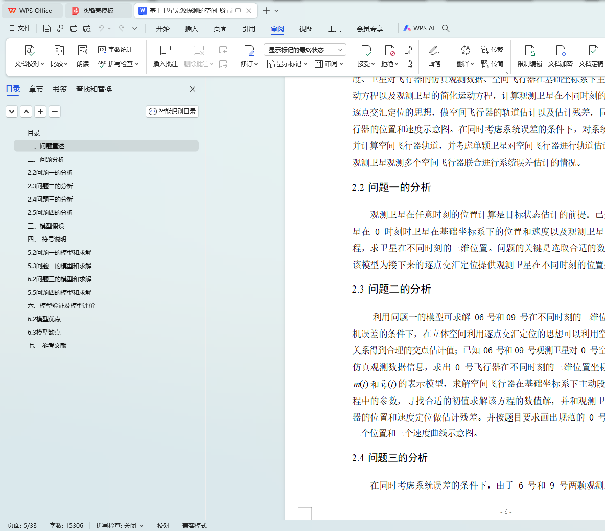 针对问题三,在考虑观测卫星的系统误差时,利用双星多点观测数据联立求解目标位置参数和系统误差参数,论文采用启发式搜索算法进行系统误差和轨道估计,分别计算出 6 号卫星的三轴指向误差为-4.845´10-4 , -7.872´10-4 ,