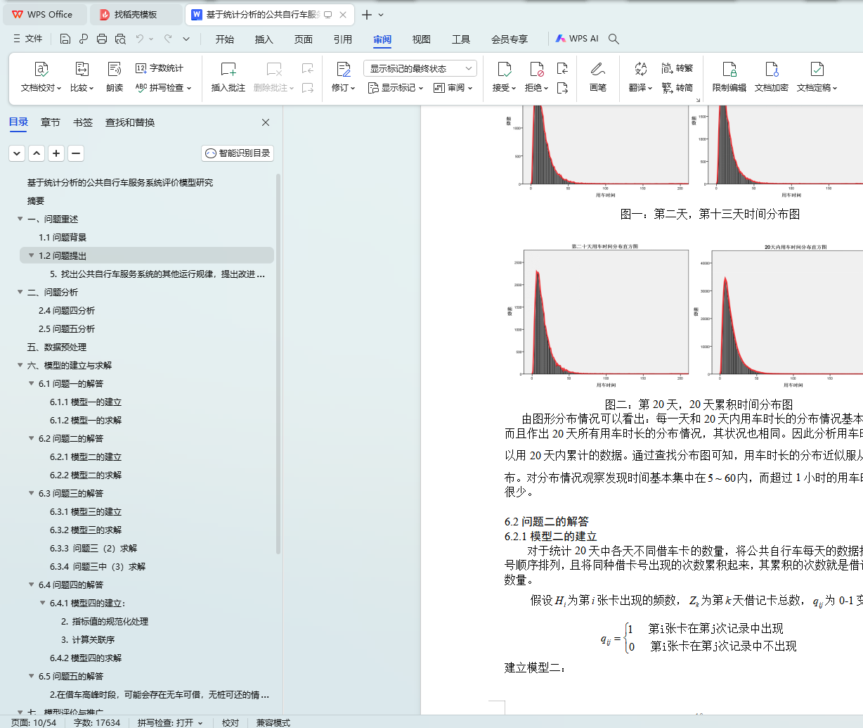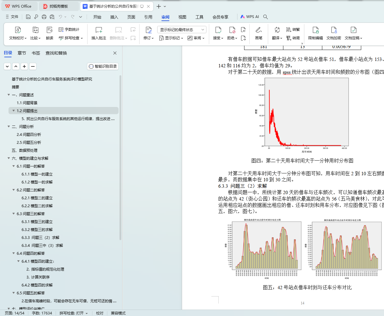 针对问题一:在已处理好的数据基础上,建立了频率与频数、用车时长的统计模型,利用SPSS软件分别统计各站点20天中每天及累计的借车及还车频次,得到每天和累计的借车和还车频次(见表五和表六);并对所有站点按累计的借车和还车频次排序(见表七和表八);对每次用车时长的分布情况进行统计分析,画出其分布图(见图一和图二),由图可知:每天用车时长分布形状非常相似且近似服从分布。
