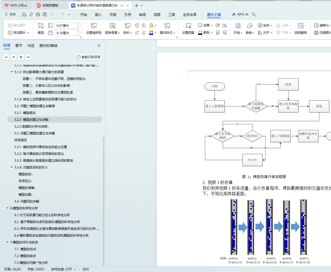 针对问题三,基于对视频中六次车辆排队事故的排队长度、上游车流量、事故持续时间、最大通行能力指标的统计数据,分析了排队长度与其他三个指标的关系,初步推导出排队长度与其他三个指标的联系,并引入贡献系数来处理不同车辆来源对排队长度影响不同的问题。为了更加真实、形象地描述指标间的关系模型,我们通过对视频中车流量变化及其分配、车辆种类、车速的建模,以元胞自动机理论为基础,为事故路段建立了较为真实的元胞自动机模型。随后运行元胞自动机模型进行多次仿真,将仿真结果与实际视频结果进行比对,验证了该模型的准确性和科学性。