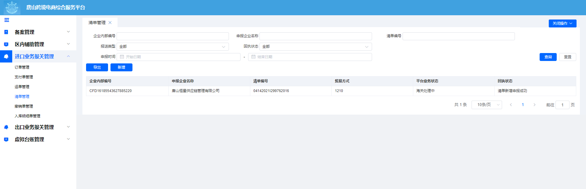 2.2.9 进/出口清单管理