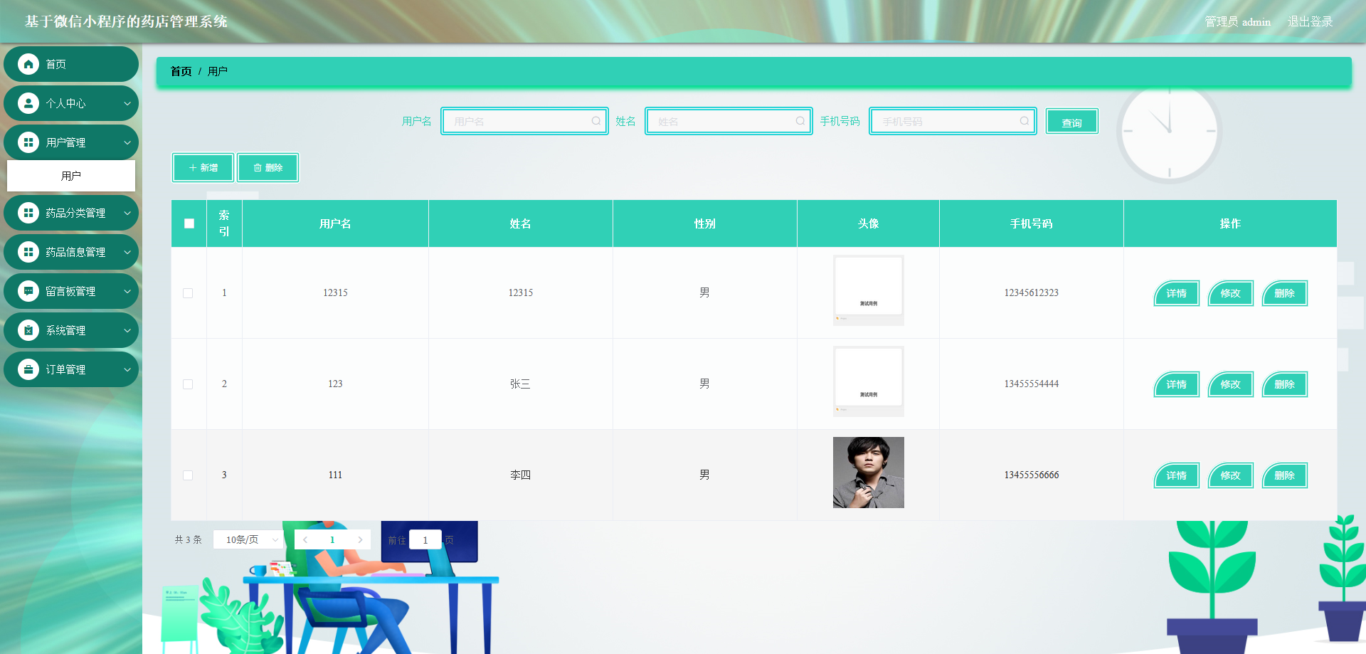 Key words: mini program, Spring Boot, MySQL, Medicine purchasing system