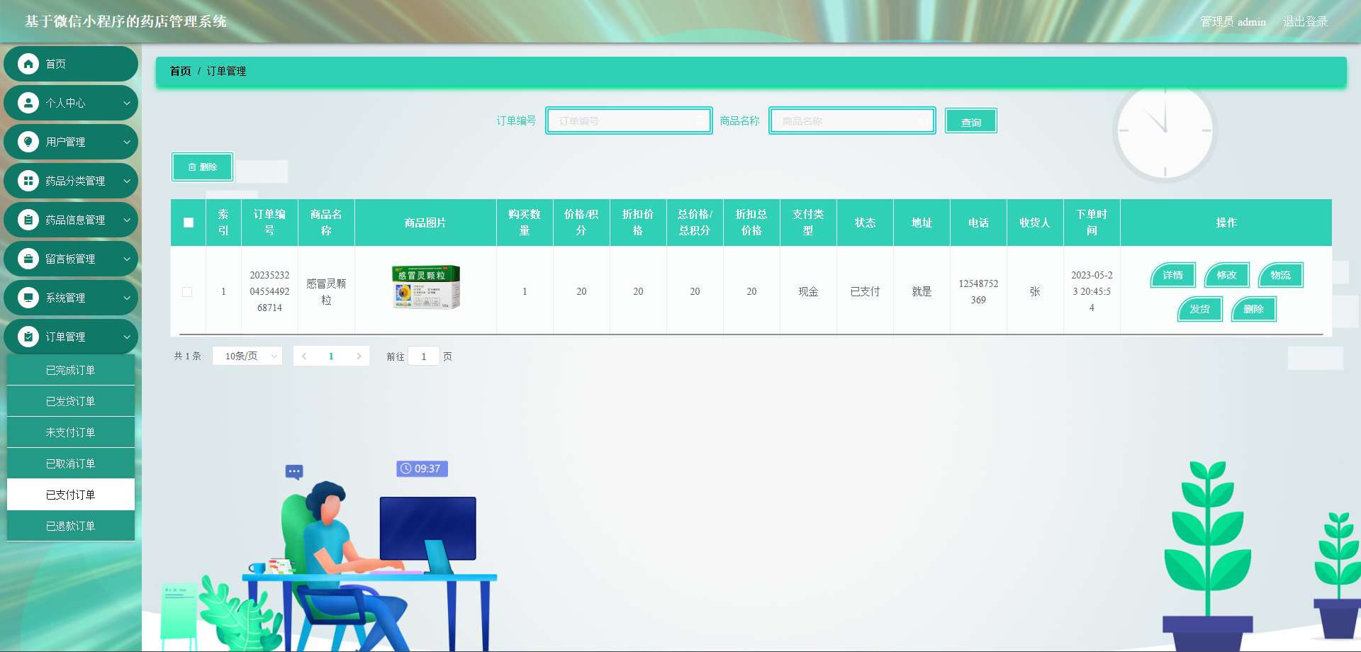 In the design of the system, I considered the variables such as the security, scalability and maintainability of the system, followed the mature structure of separating the front and back ends, and used wechat payment. After testing and optimization, the system can provide users with convenient and safe drug purchase services, while providing efficient and accurate order processing and management for pharmacies.
