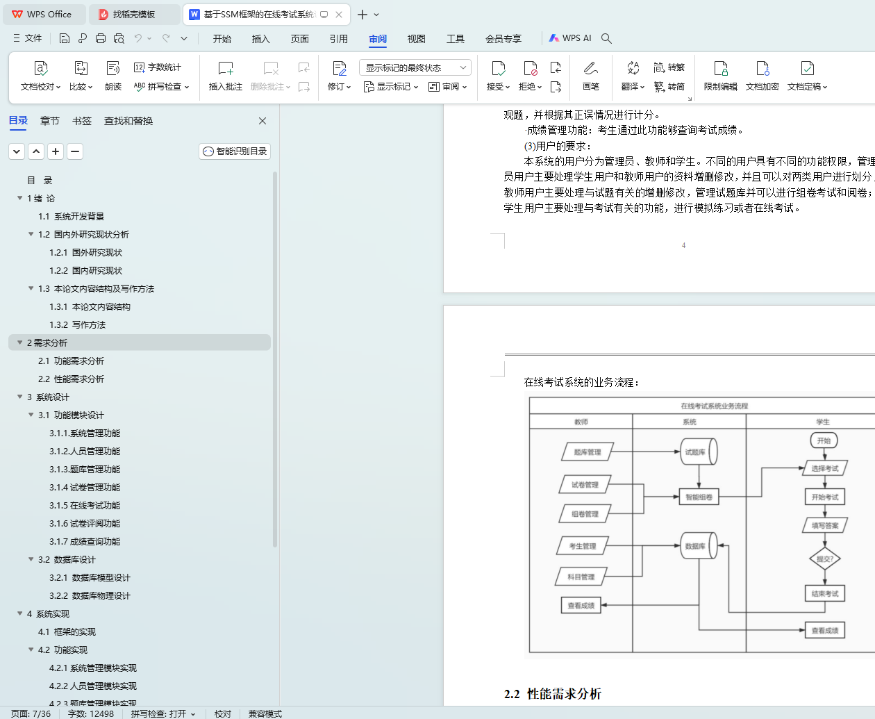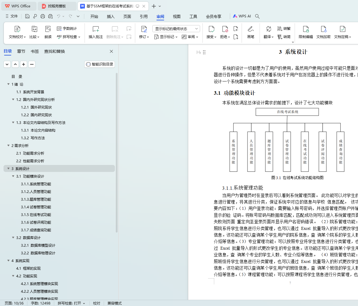 在研究中,首先对SSM框架进行了深入分析,包括Spring、SpringMVC和MyBatis的特点、优势和适用场景等。然后,通过需求分析,明确了在线考试系统的功能和性能要求。接下来,根据需求分析结果,进行了系统的设计,包括数据库设计、系统架构设计等。最后,利用SSM框架进行了在线考试系统的开发和实现。本论文基于SSM框架成功地设计与实现了一种在线考试系统。经过实践验证,该系统具备了高度的可靠性、安全性和性能优势。同时,该系统在满足教育教学的需求的同时,为学生提供了便捷、高效的在线考试体验。