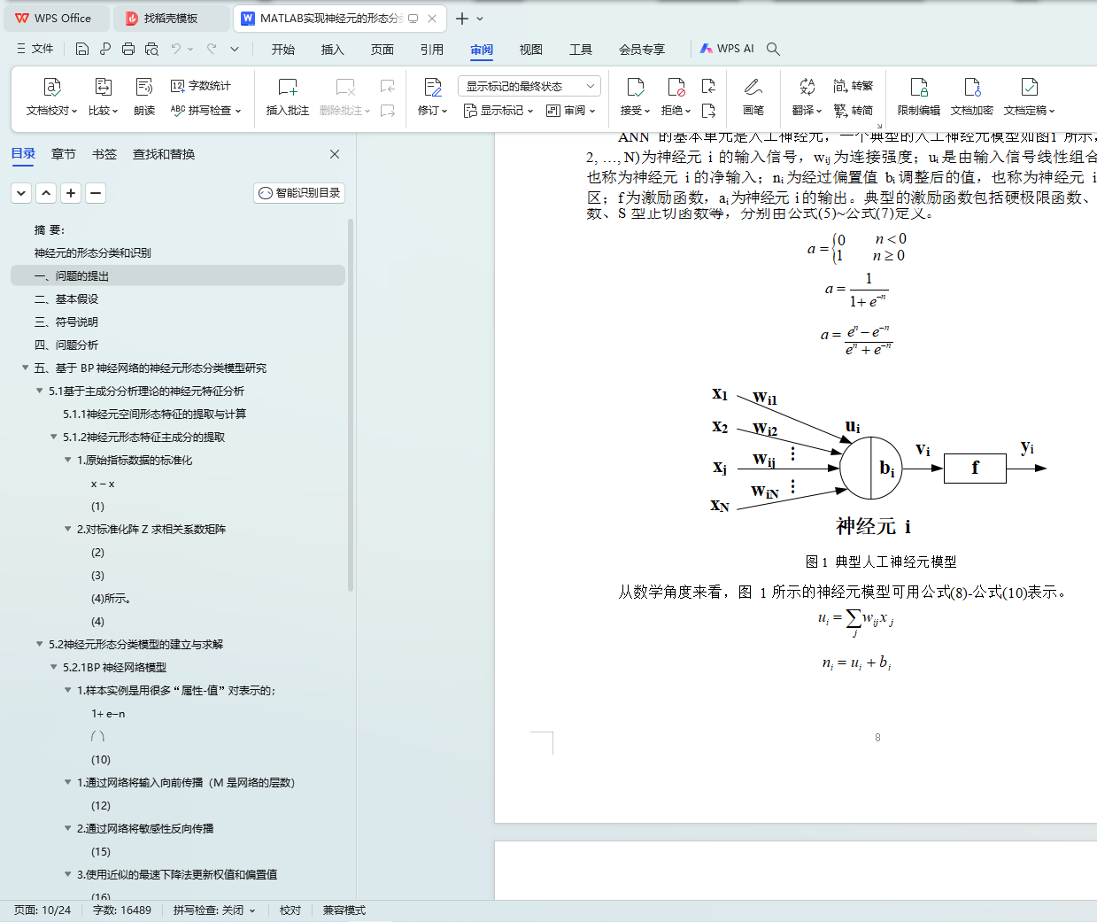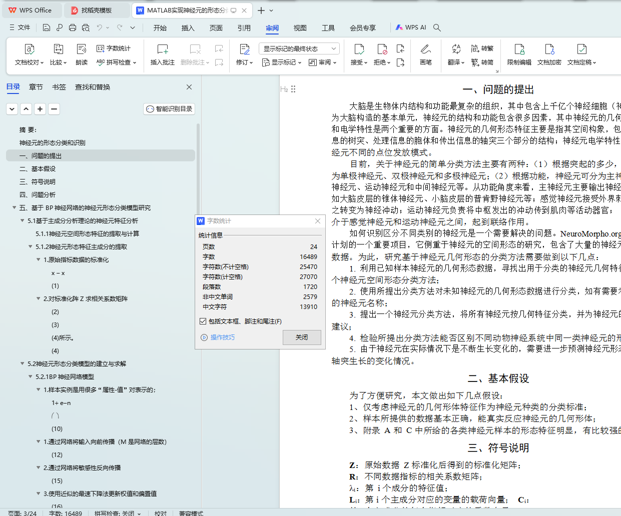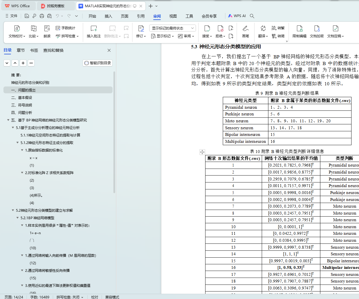 首先,对于问题一,采用 20 个形态参数描述神经元的形态特征,利用主成分分析理论将其降维,获得 4 个综合性主成分特征。在此基础上建立了一个基于 BP 神经网络的形态分类模型,并通过网站上的测试样本检验该模型的正确性;针对问题二,使用该分 类模型对本题附录 B 中神经元进行分类,分类结果如下:编号 7、8、9、10、11、12、