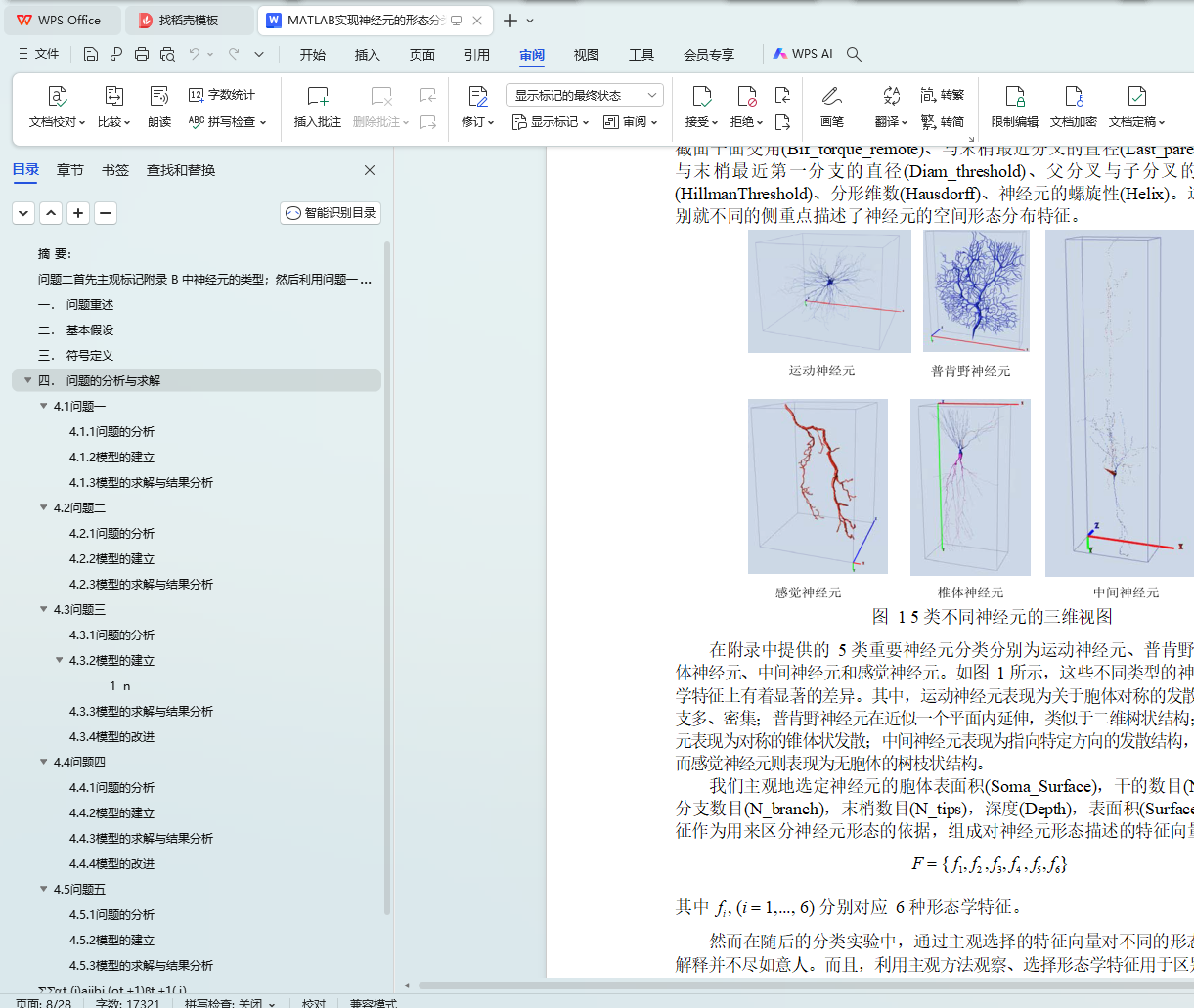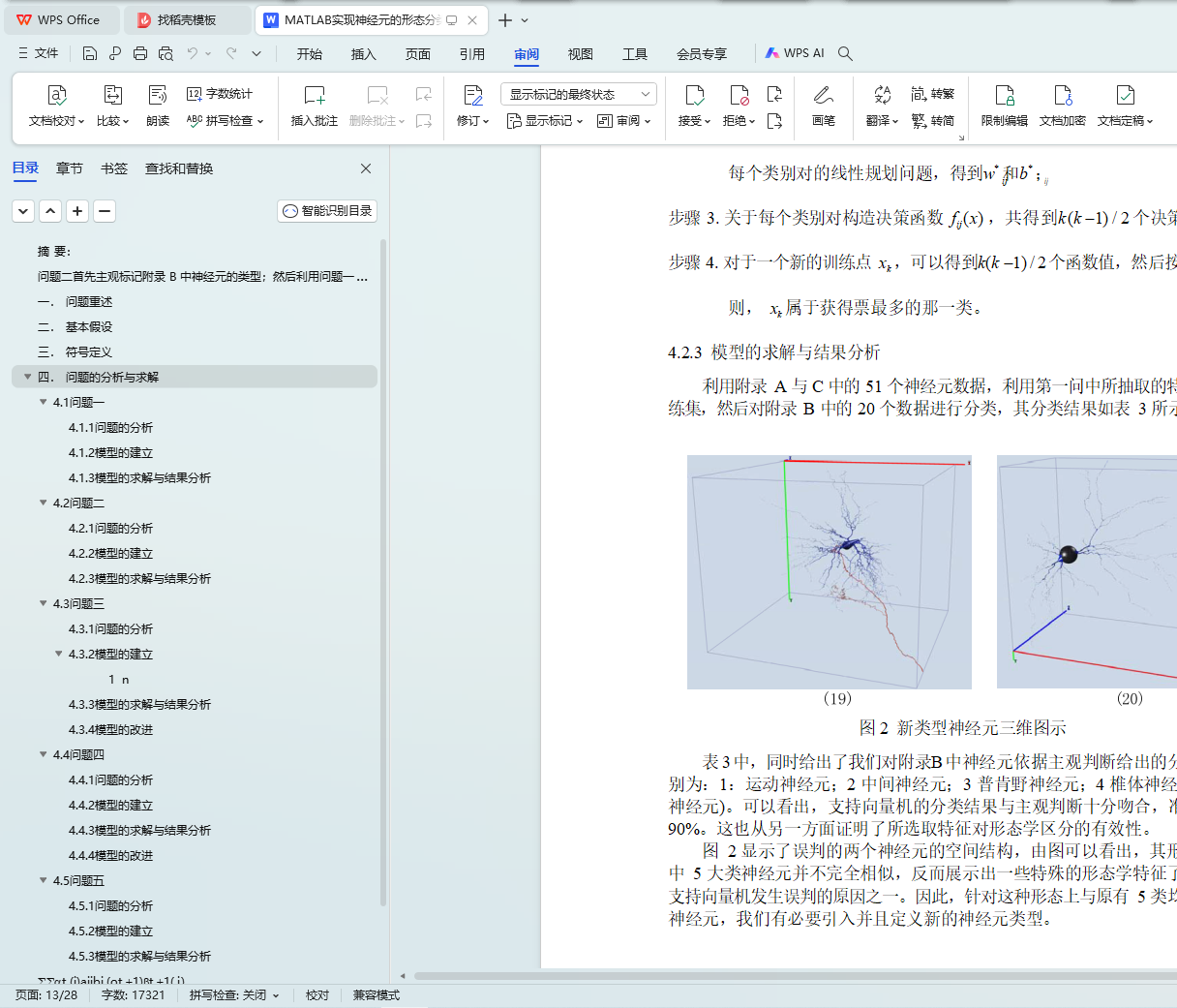 问题二首先主观标记附录 B 中神经元的类型;然后利用问题一中所建立的