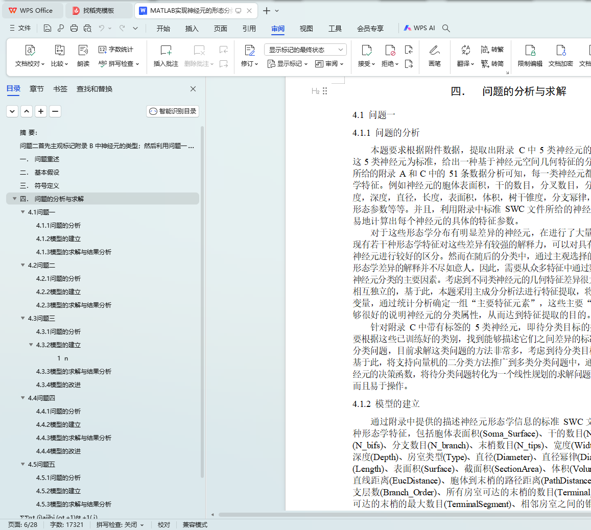 问题一首先提取神经元的 43 种几何形态特征,然后采用主成分分析法,在