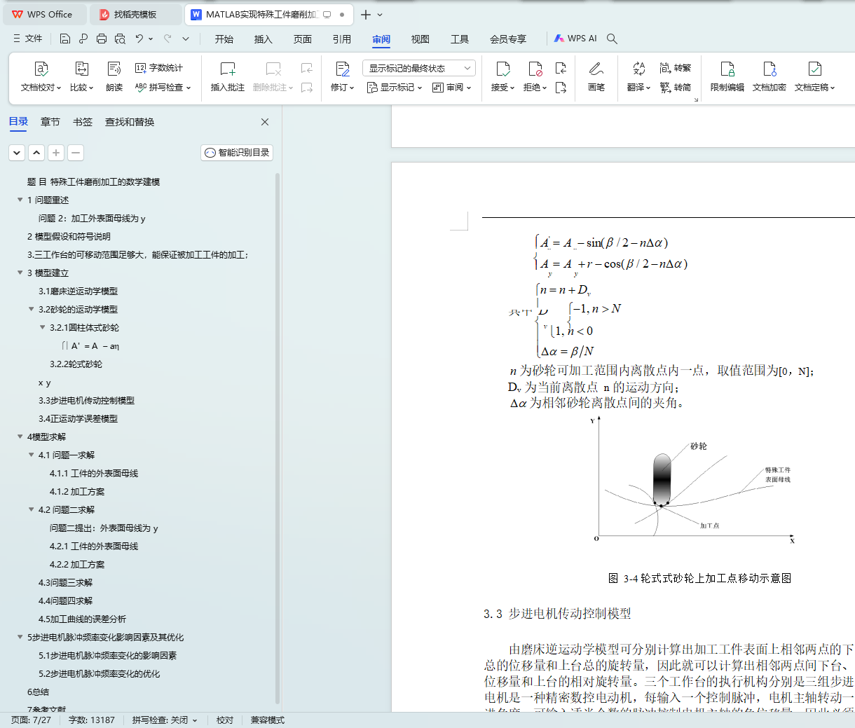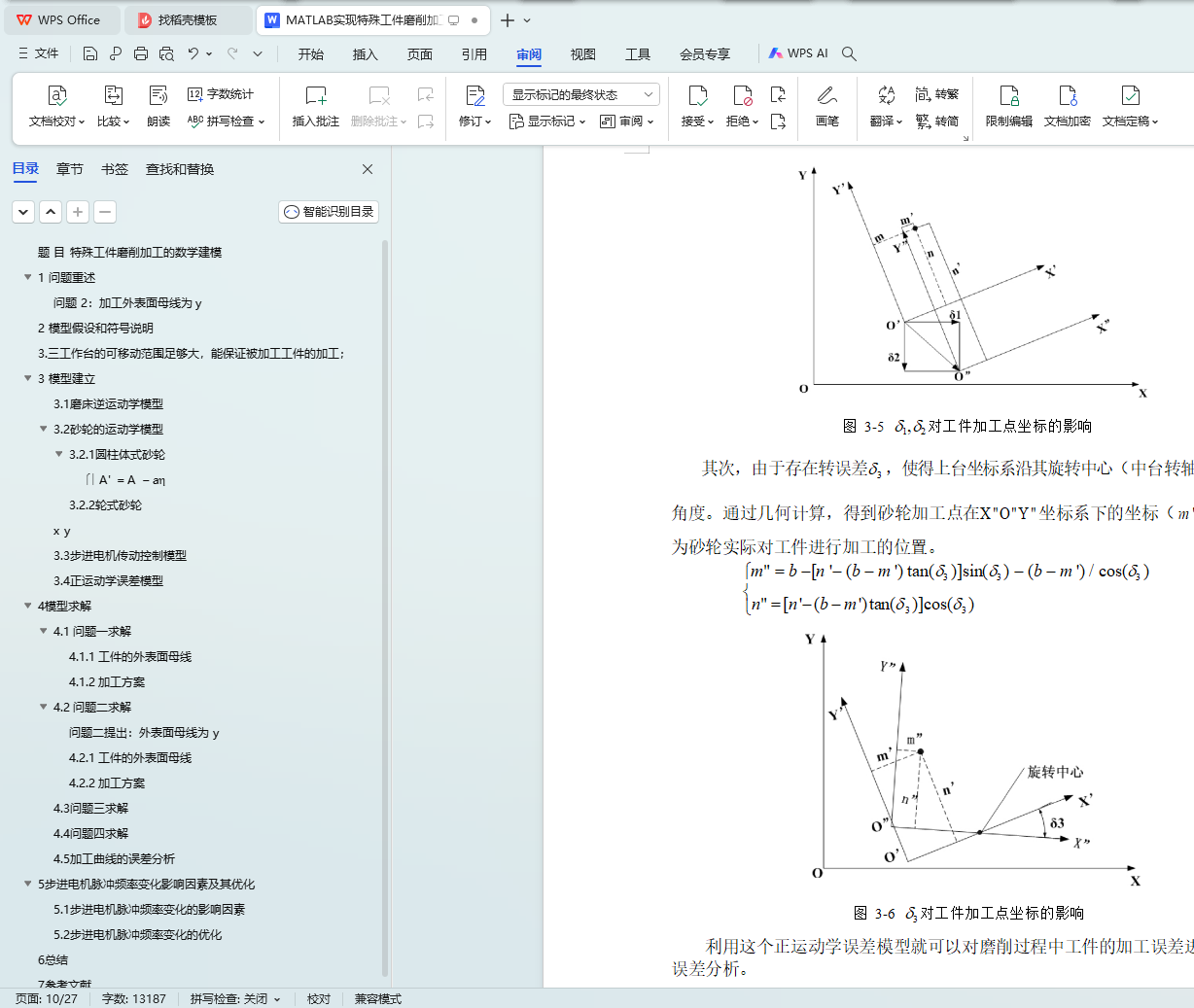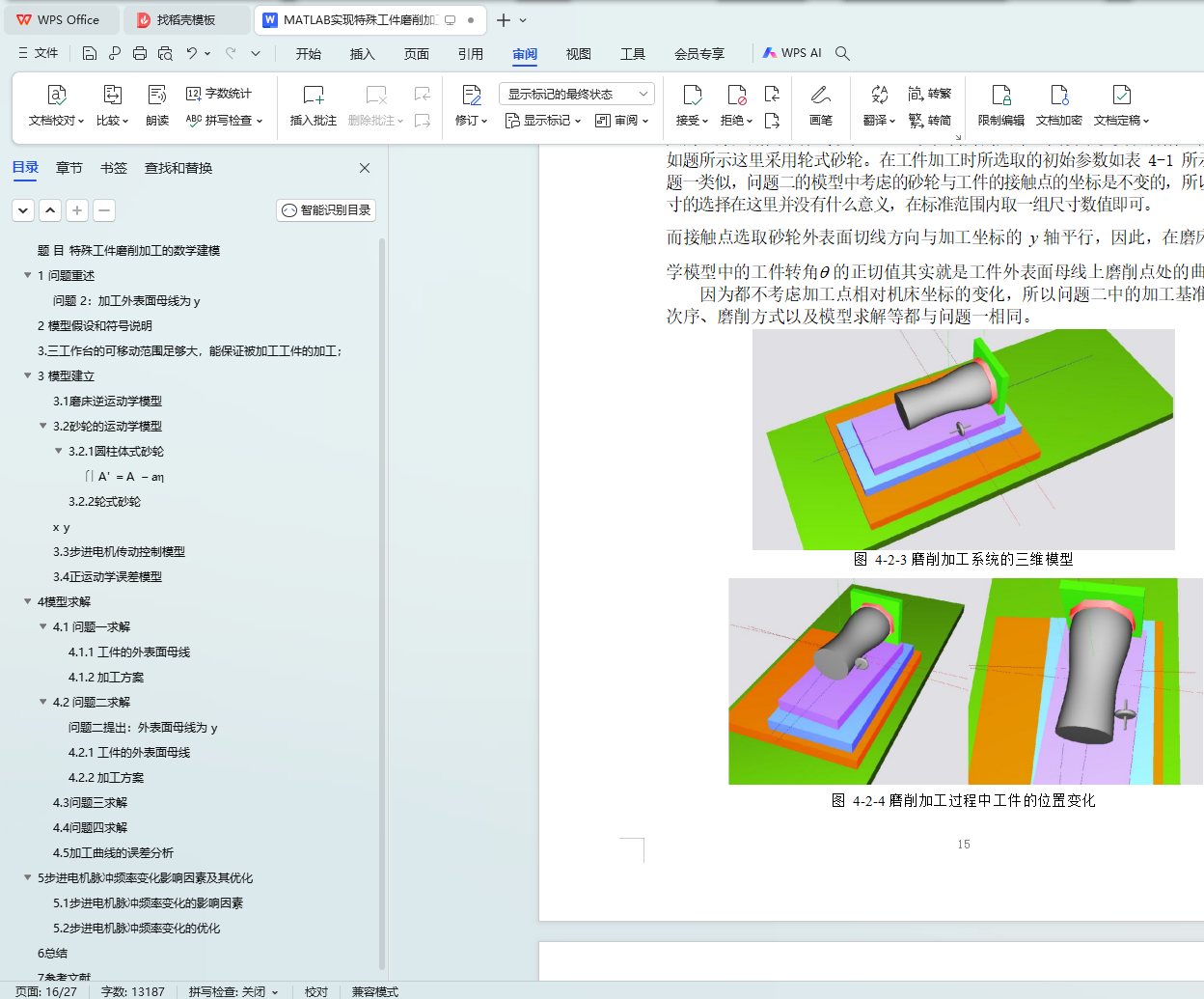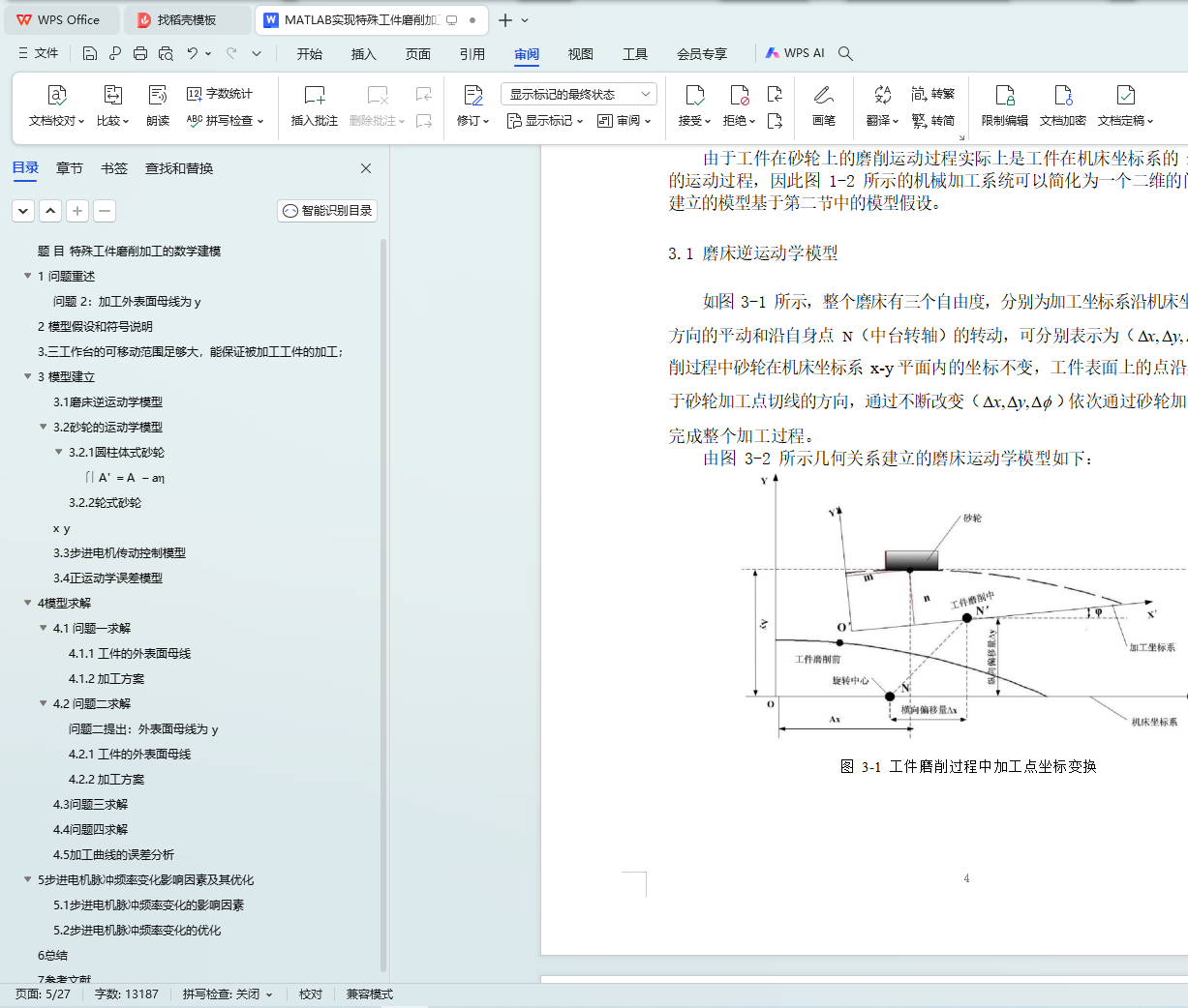 本文主要是针对特殊工件进行磨削加工问题的数学建模。分析的对象为三个自由度的内外圆磨床。由于砂轮和工件都做绕某一轴的旋转运动,所以该磨削加工可以简化为一个二维的问题。