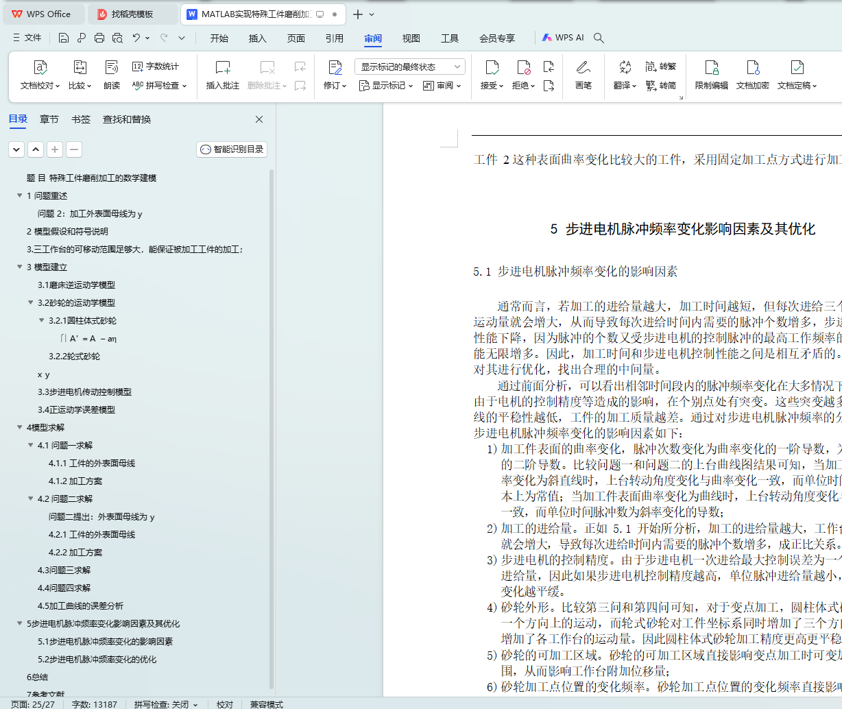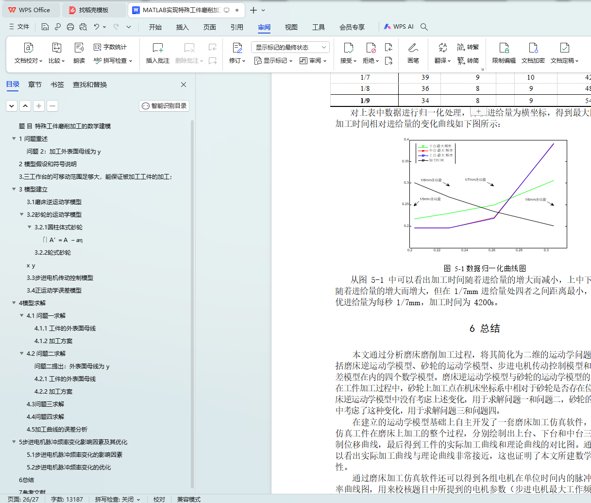 最后分析了步进电机脉冲频率变化的影响参数和步进电机脉冲频率的优化。得到最优进给量为每秒 1/7mm,加工时间为 4200s。