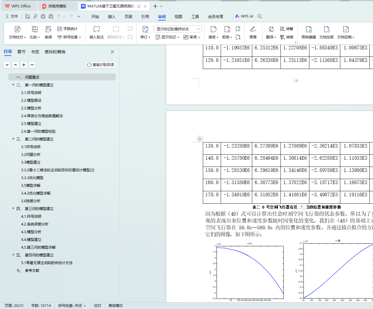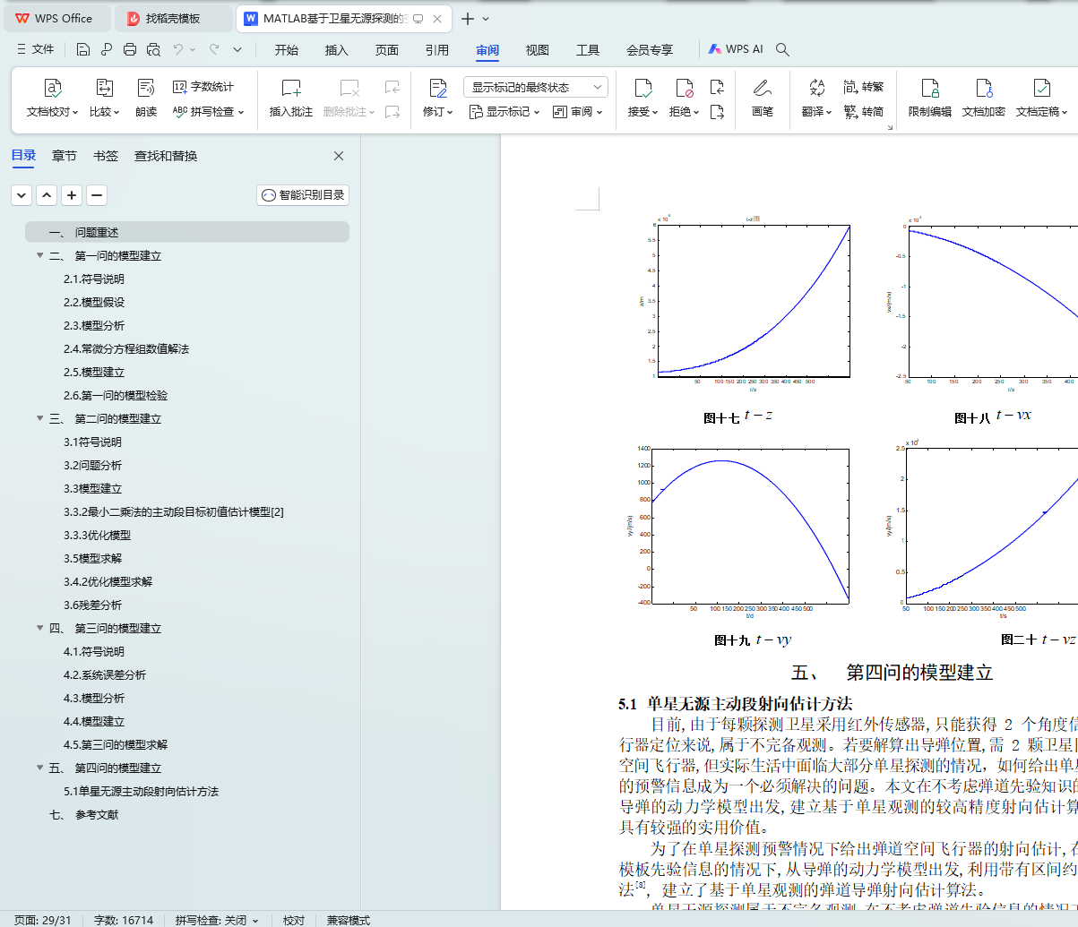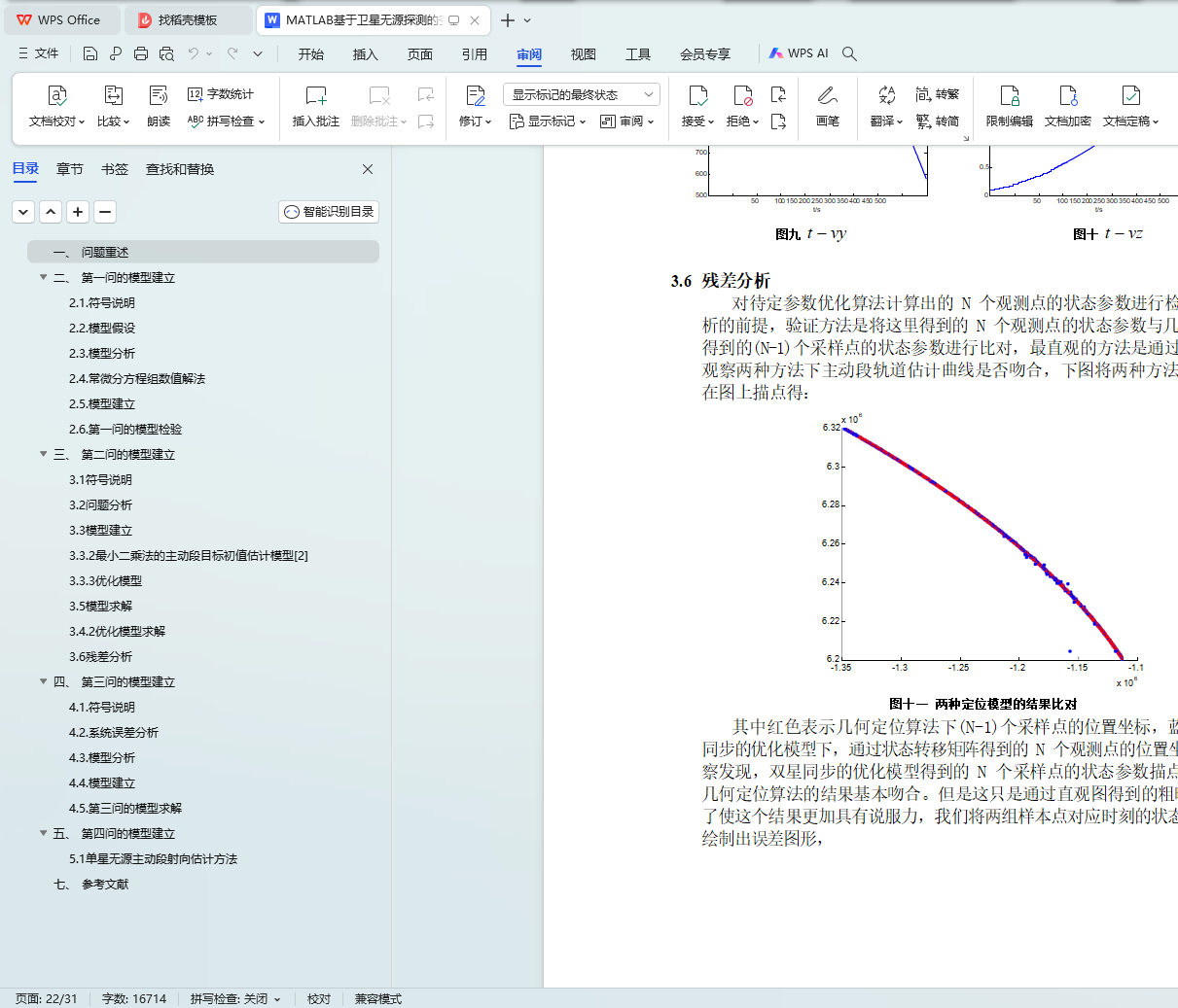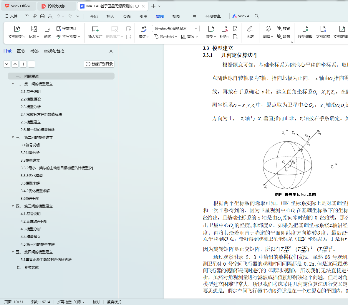 针对问题二,首先通过建立几何定位模型,计算出 N 个观测点的位置参数, 并与双星插值同步后的计算结果进行比较,误差在 1.24%以内。利用待定系数法, 建立优化模型,给出了主动段目标初值估计,该法与最小二乘法给出的结果相比更直接快速。根据 12 态线性多项式拟合模型,建立状态转移矩阵,综合运用目