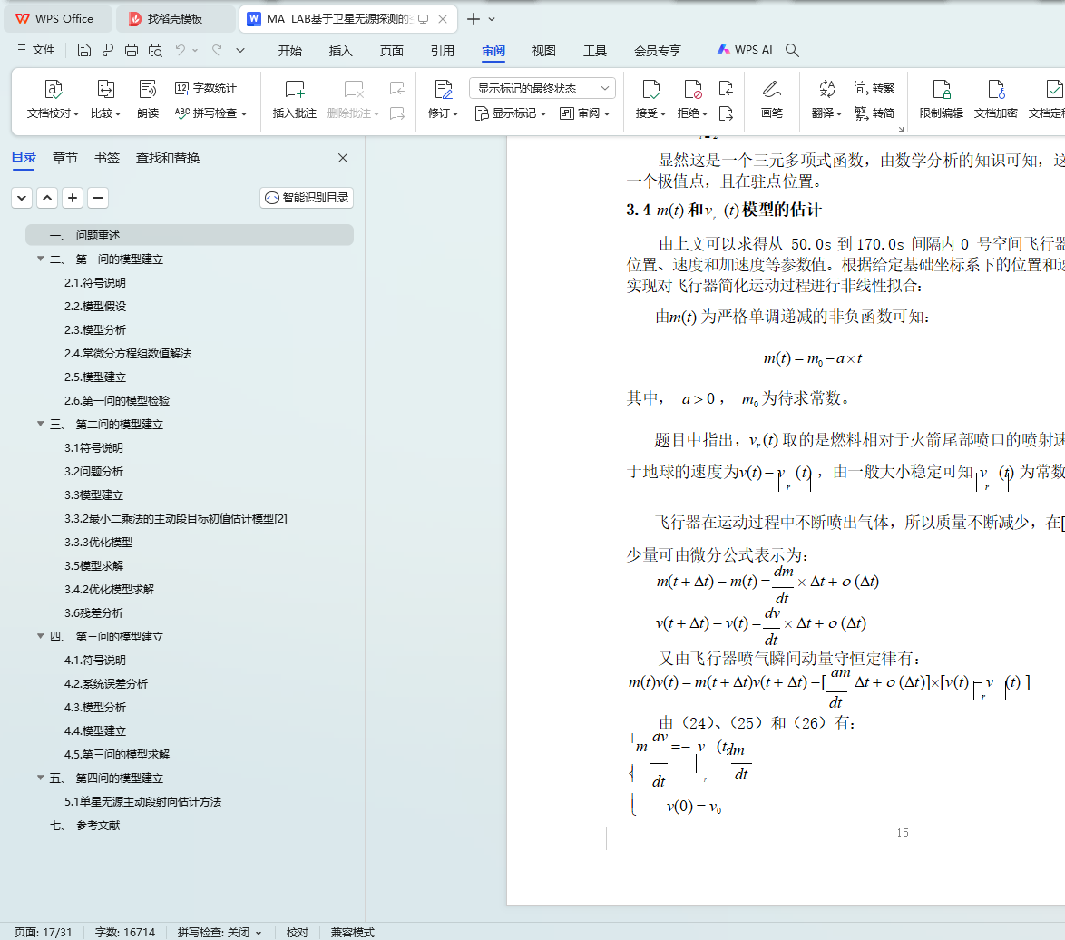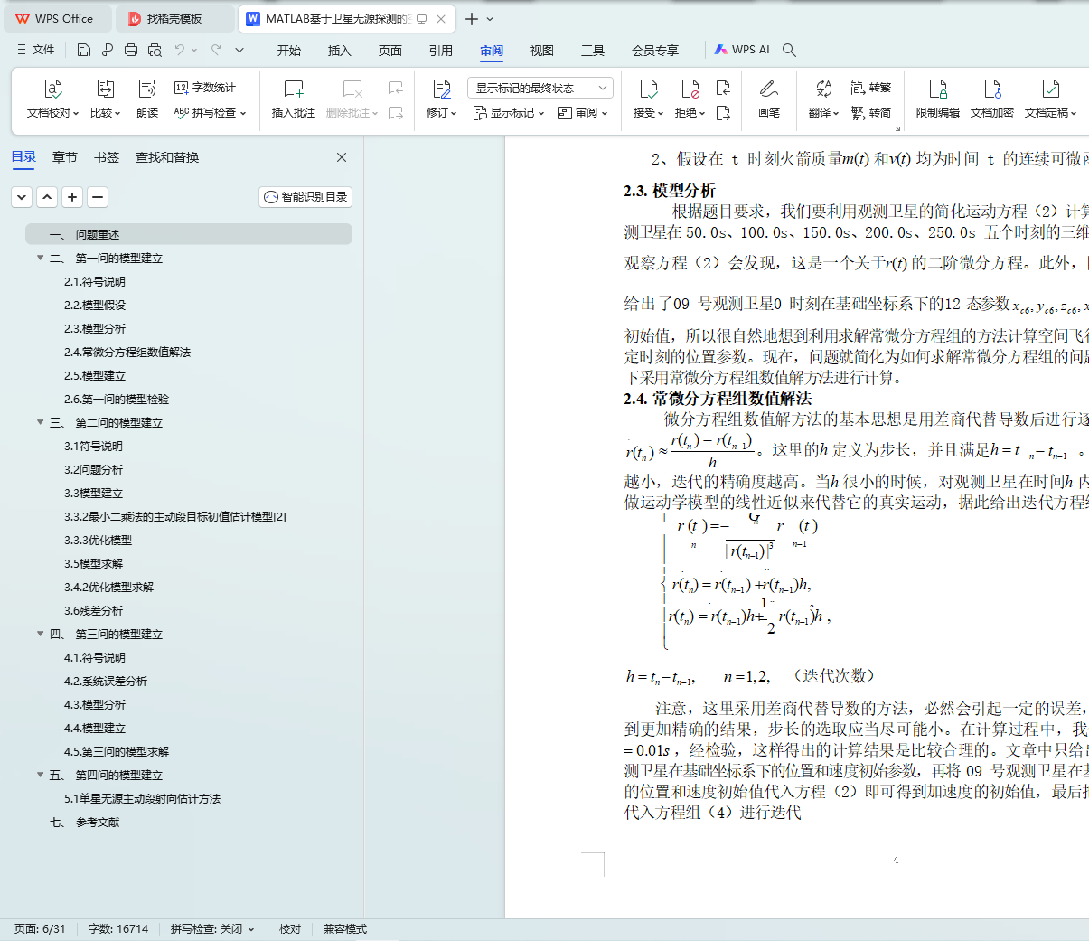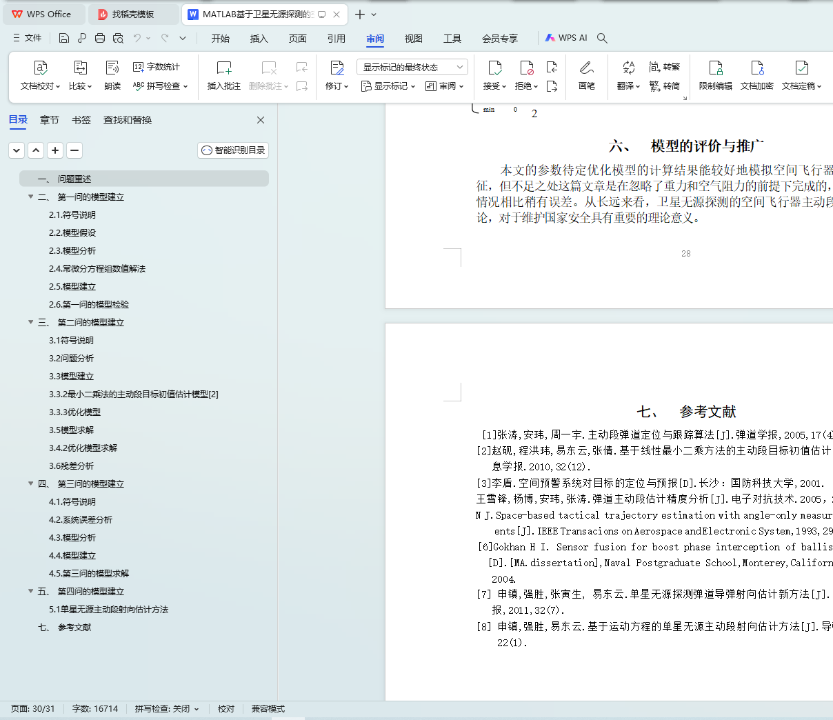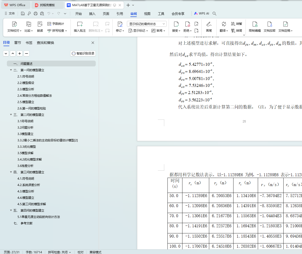 针对问题二,首先通过建立几何定位模型,计算出 N 个观测点的位置参数, 并与双星插值同步后的计算结果进行比较,误差在 1.24%以内。利用待定系数法, 建立优化模型,给出了主动段目标初值估计,该法与最小二乘法给出的结果相比更直接快速。根据 12 态线性多项式拟合模型,建立状态转移矩阵,综合运用目