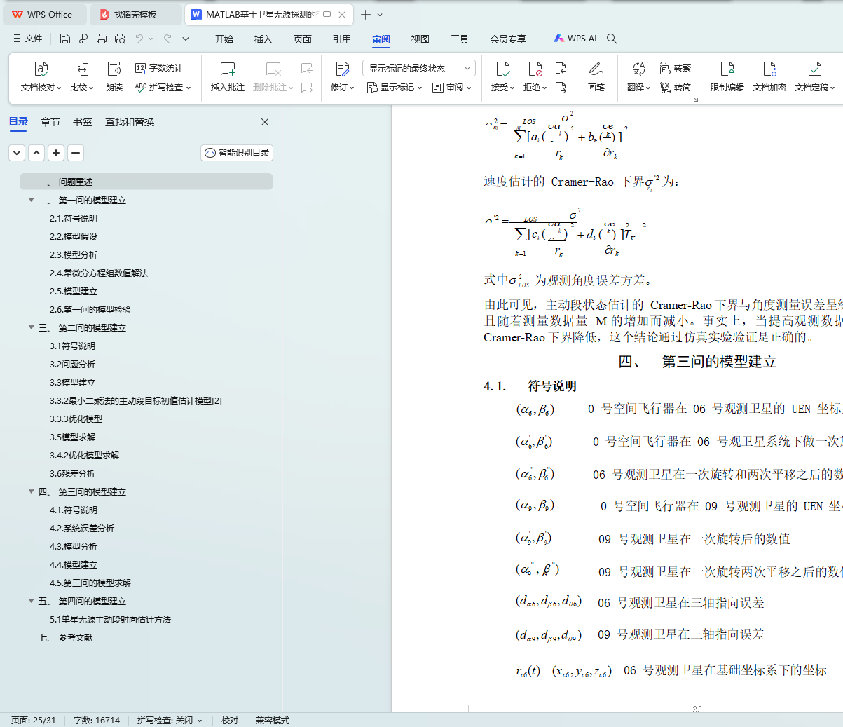 针对问题三,考虑在双星同步定位的情况下,建立三轴指向误差和观测值之间的数学模型,根据同时刻观测时,双星与空间飞行器应处同一平面的约束条件, 建立优化模型,计算出dq 6 , da 6 , db 6 , dq 9 , da 9 , db 9 的值。进而参照问题二,给出结论。