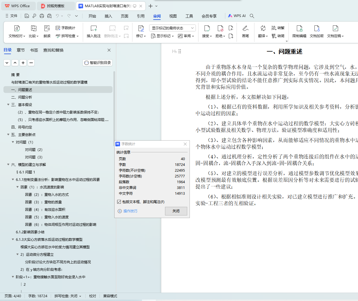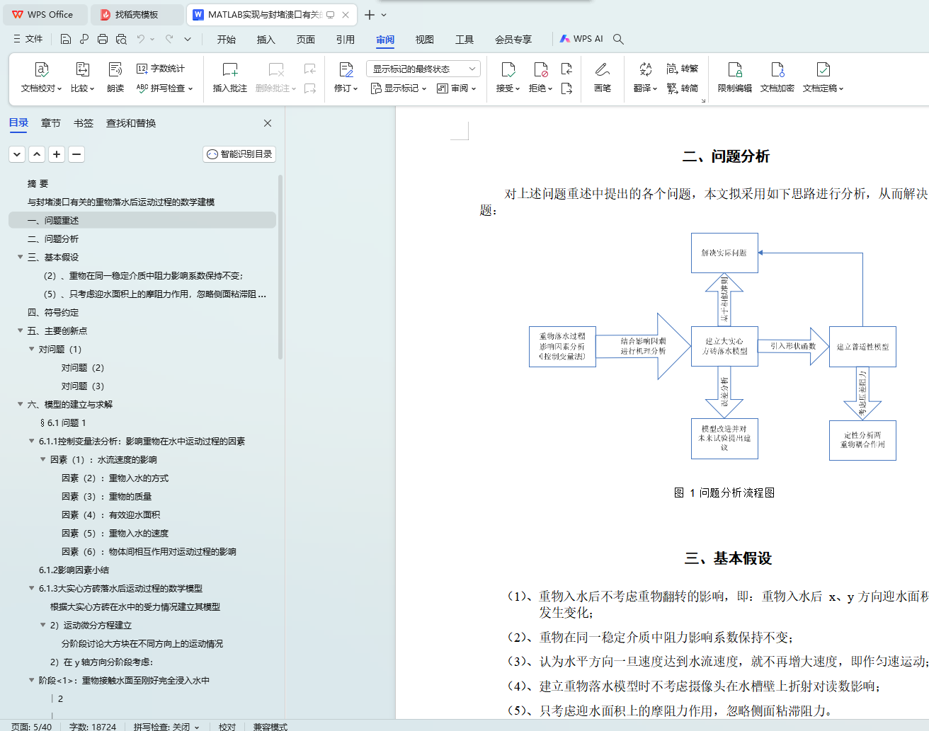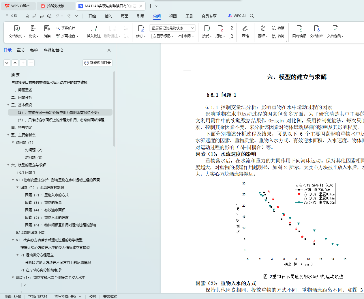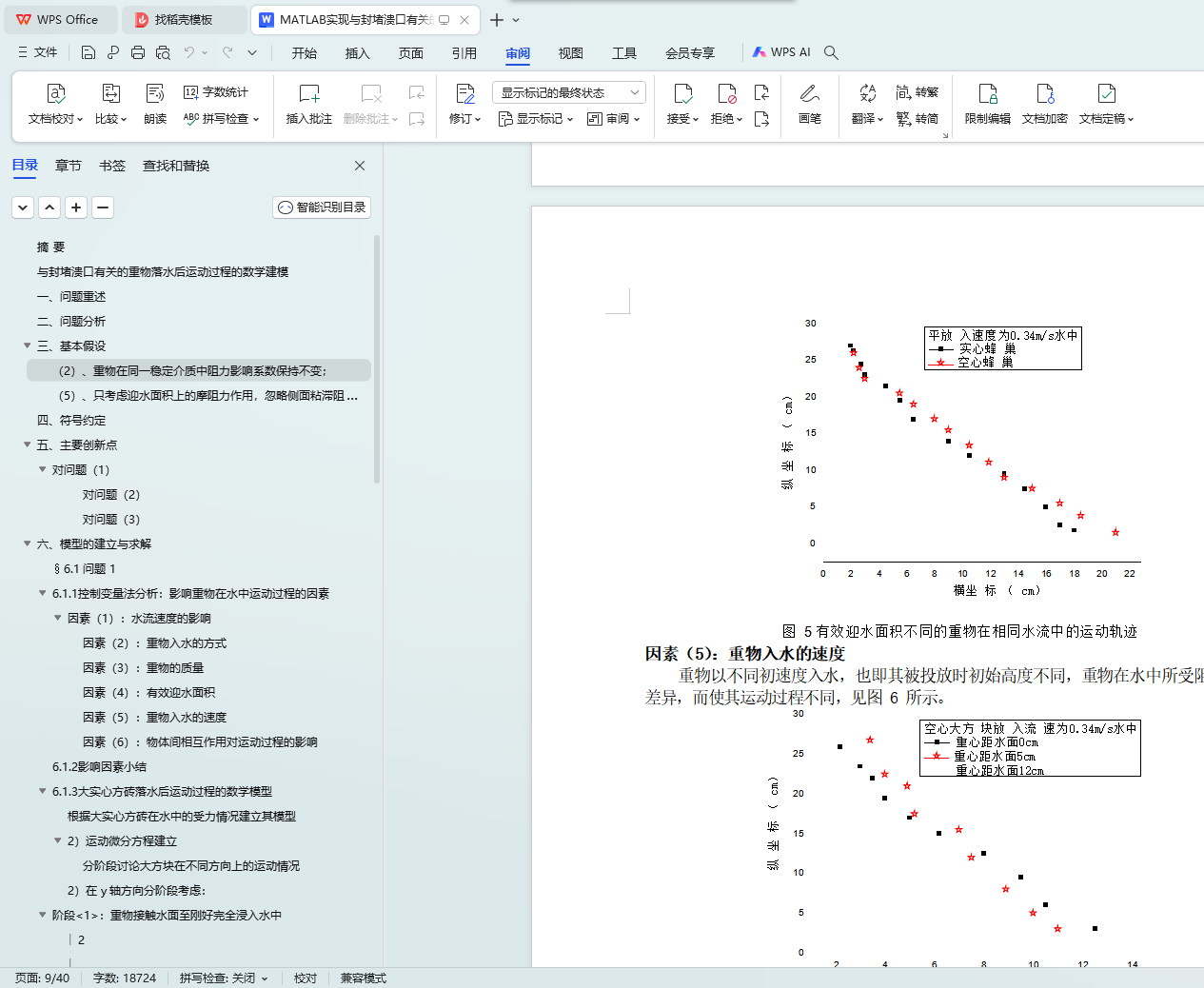 对问题 2,受到 3D 动画制作的启发,采用了蒙皮效应来刻画重物形状,引入形状函数反映重物形状变化对水流阻力的影响,建立了能适应不同情况的普适性模型;并从单个物体模型过渡到两个重物连接后的组件在水中耦合作用过程,通过 Origin 作单个与两个物体的对比图,分析了压差阻力对两个物体耦合时的重要影响。