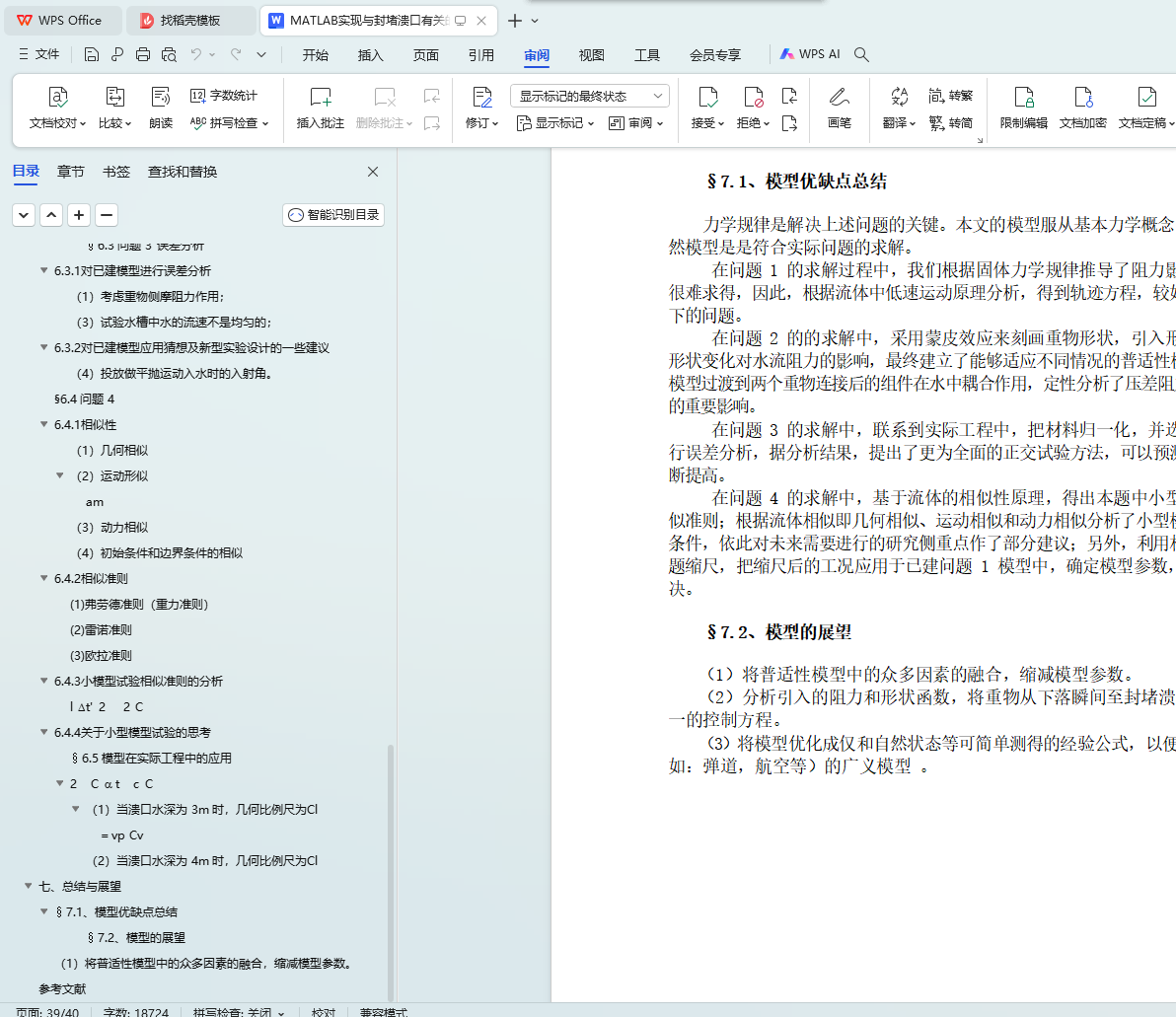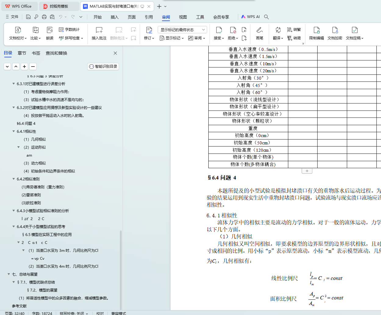 对问题 4,基于流体的相似性原理,得出本题中小型模型试验满足的相似准则;根据流体相似即几何相似、运动相似和动力相似分析了小型模型试验中主要相似条件,依此对未来需要进行的研究侧重点作了部分建议;另外, 利用相似性原理将实际问题缩尺,把缩尺后的工况应用于已建问题 1 模型中,确定模型参数,使实际问题得到解决。