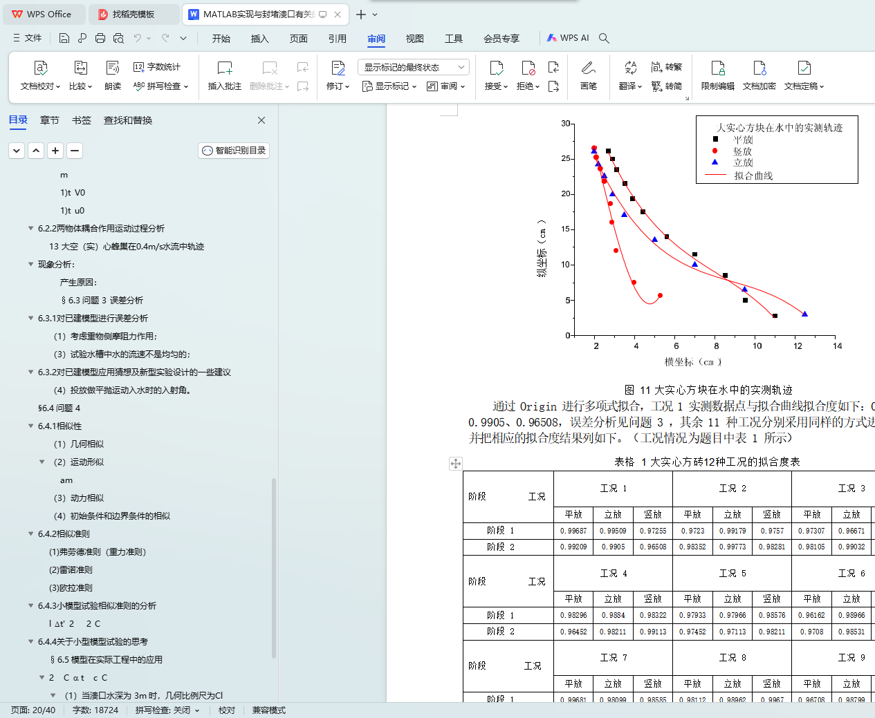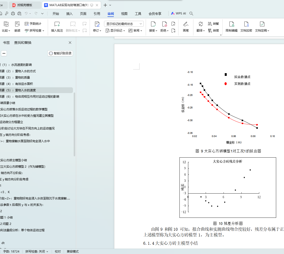 对问题 1,利用了附录 1 中各试件的实验结果,并运用控制变量法,每次只改变一个因素,在 Origin 中作实验数据对比图,定性分析了各因素对重物运动过程的影响,并得到 6 个主要影响因素;然后依此及重物落水过程的受力情况,分阶段建立了大实心方砖入水过程及完全入水后的运动模型,采用量纲分析及经验法两种方式考虑阻力, 得到一主模型和一辅模型。结果表明,大实心方砖主模型,总体效果较好,当其在特殊工况拟合度较差时采用辅模型进行辅助分析。