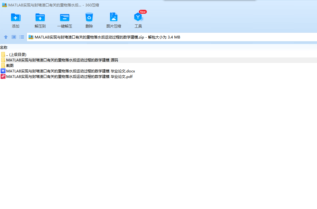 题 目 与封堵溃口有关的重物落水后运动过程的数学建模