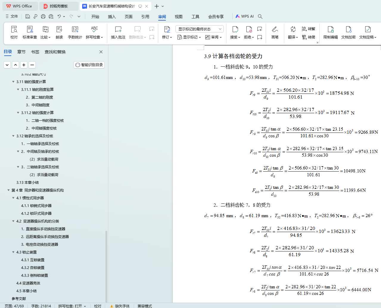 12.计算倒档直齿轮11, 12 ,13 的接触应力