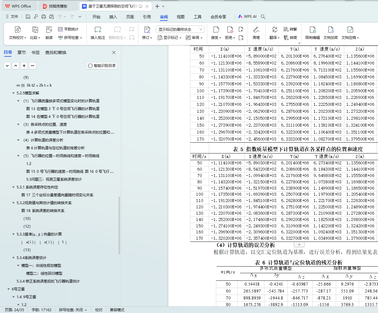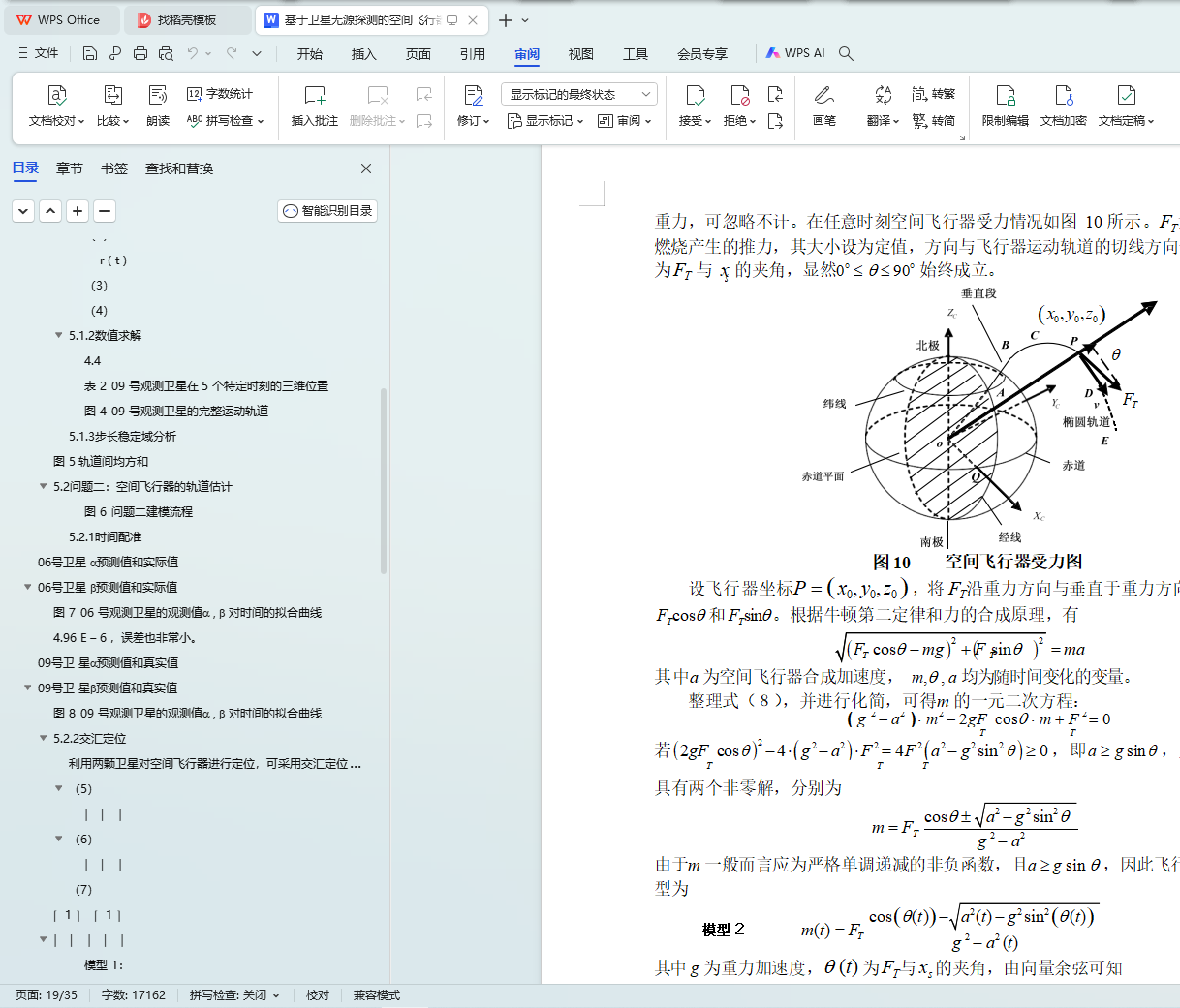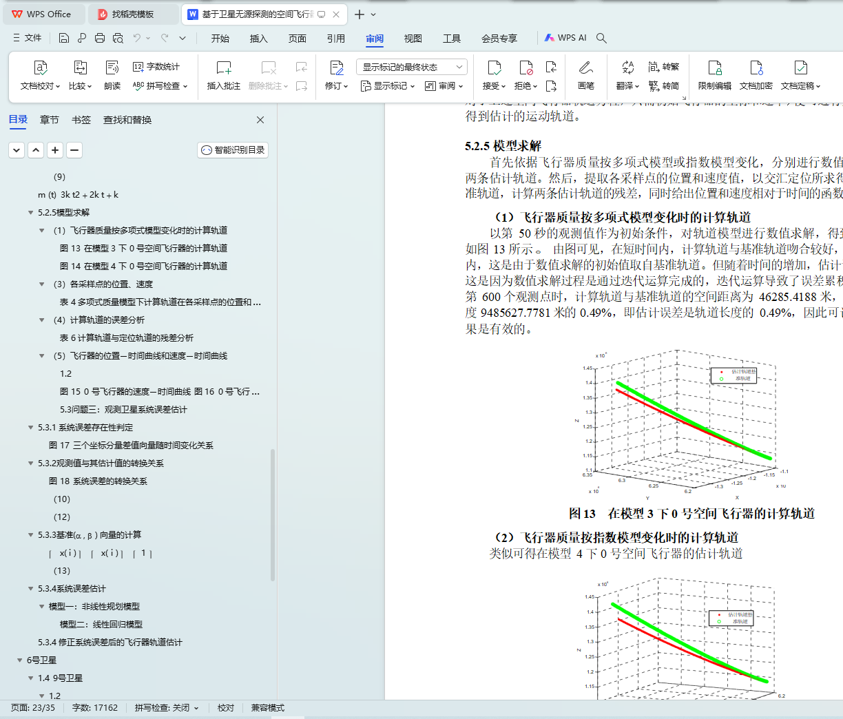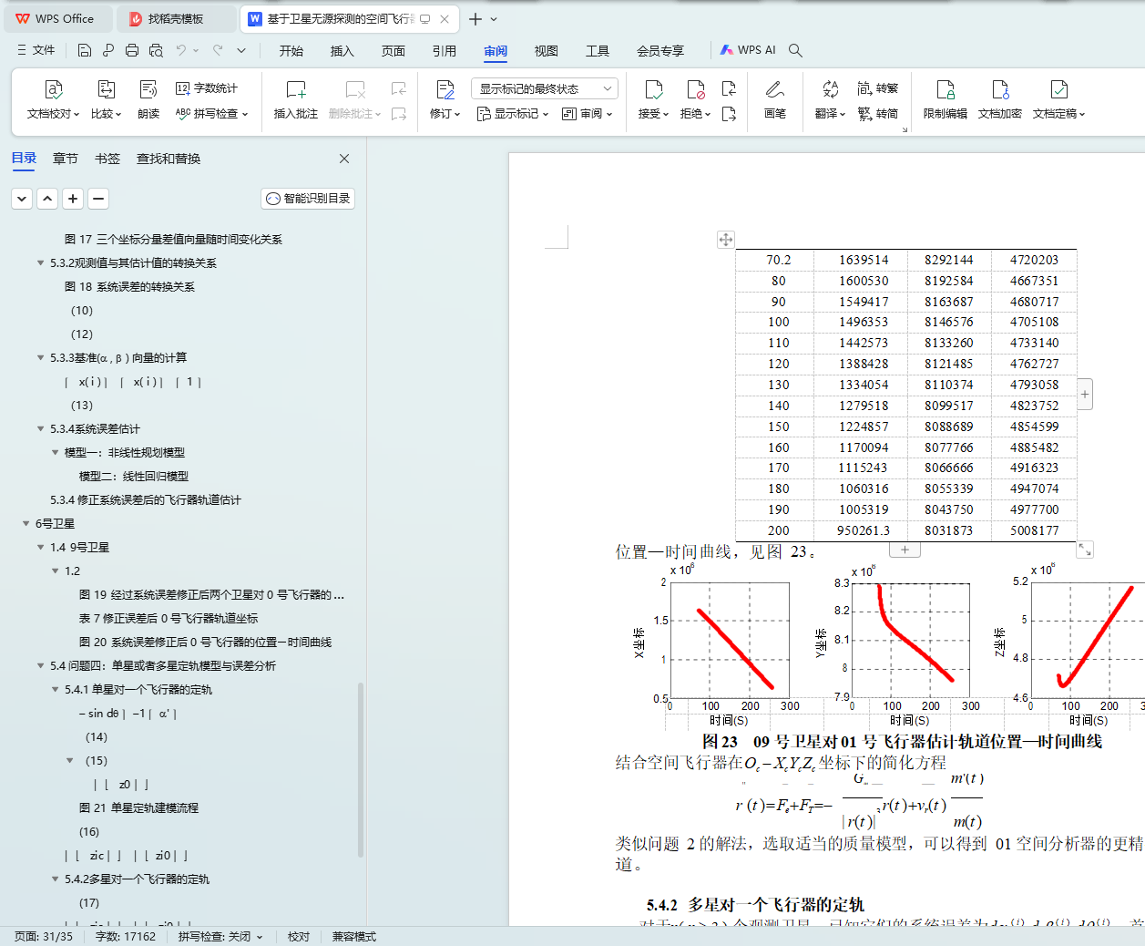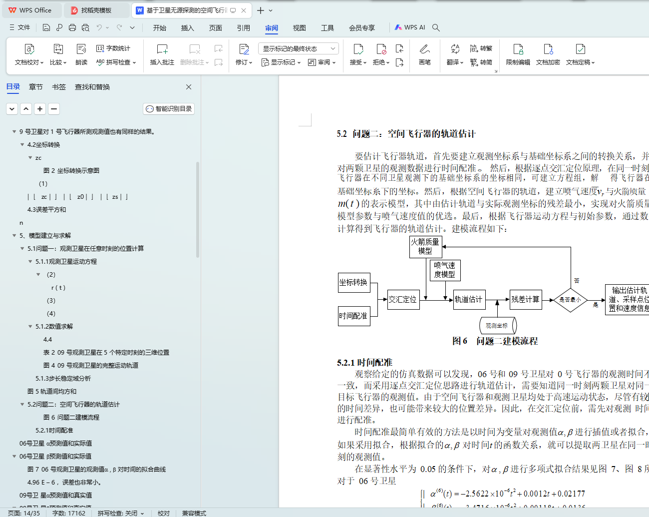 针对问题四:对单星、单飞行器定轨情况,提出了一个合理的假定,建立了优化模型,并对 01 号飞行器的轨道进行了估计,得到了相应结果;对多星、单飞行器定轨情况,提出了一个定轨的最小二乘优化模型;对多星、多飞行器的定轨情况提出了首先要研究的两个难点,才能联合进行系统误差估计。