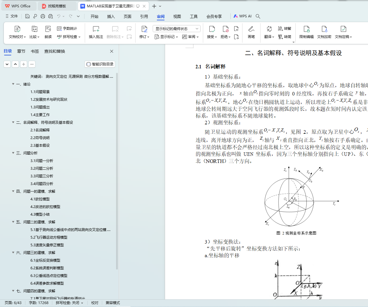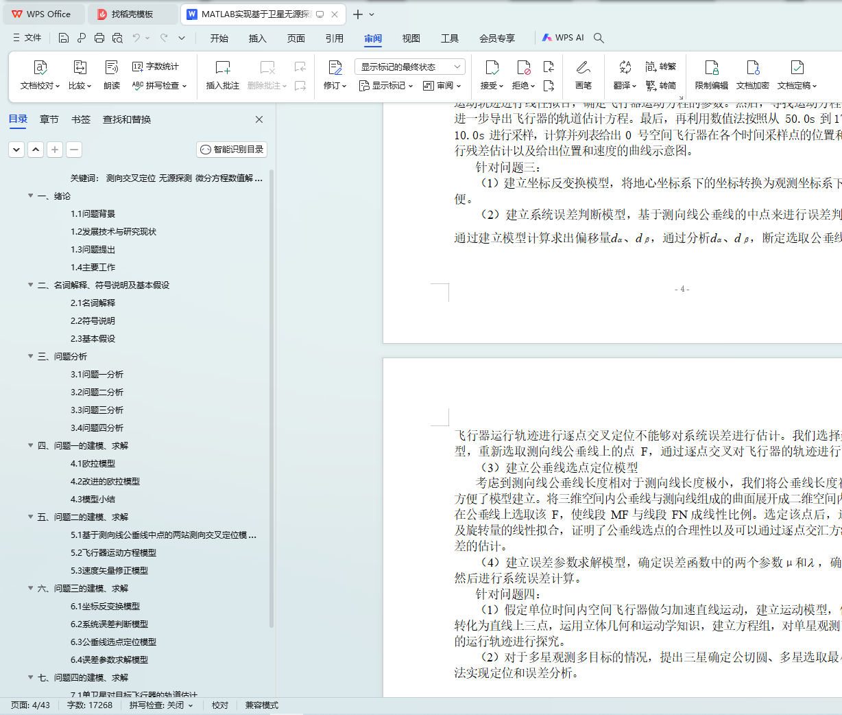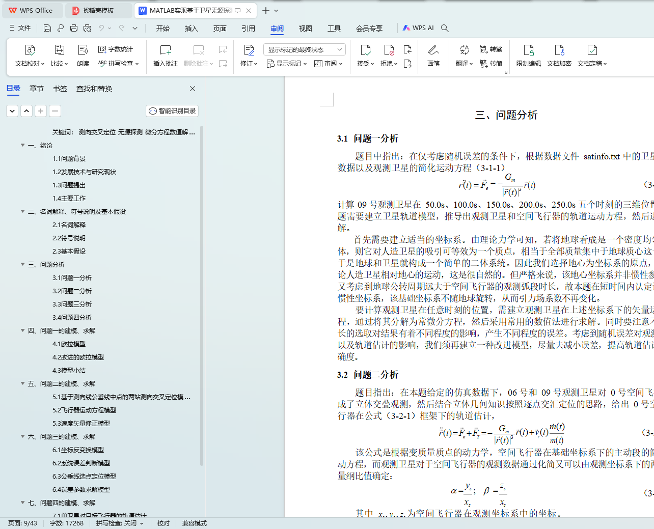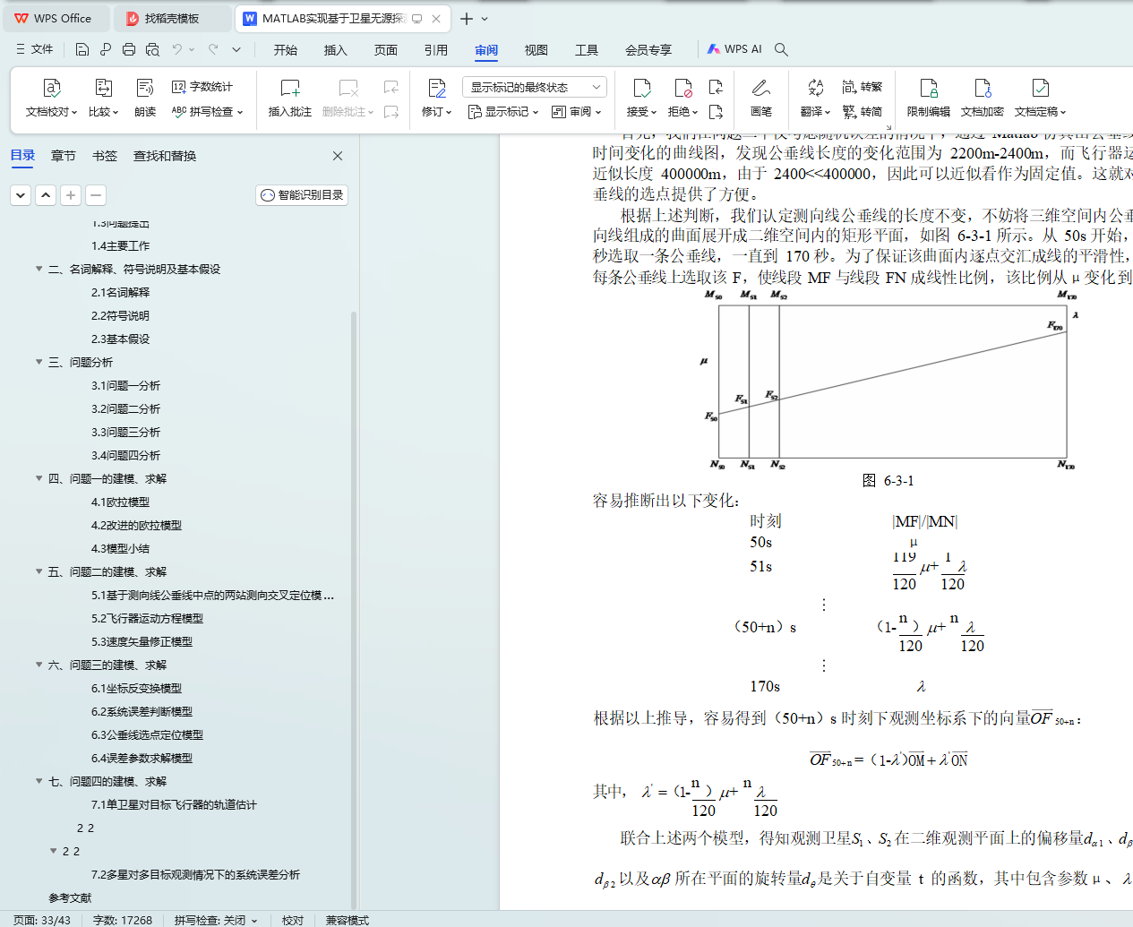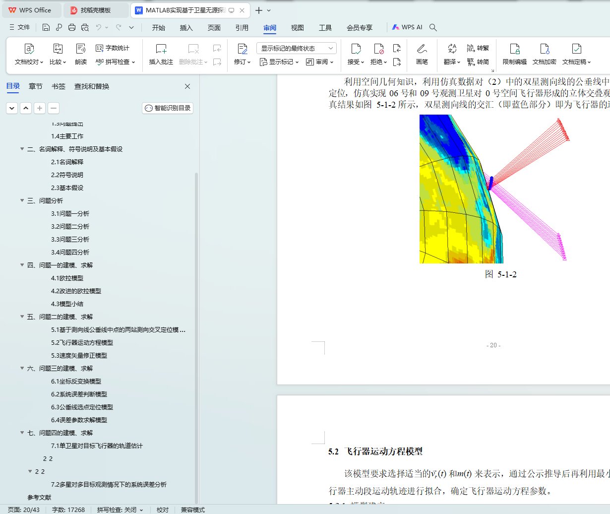 针对问题二,首先建立基于测向线公垂线中点的两站测向交叉定位模型,利用立体几何知识以及逐点交汇定位的思路,通过向量运算方法逐点定位目标,仿真 06 号和 09 号观测卫星对 0 号空间飞行器的立体交叠观测轨道;然后选取线性质量变化方程m(t) = m0 - kt ,建立飞行器运动方程模型,通过分析和处理观测数据,拟合确定方程参数;最后利用无穷逼近方法,确定初值条件。