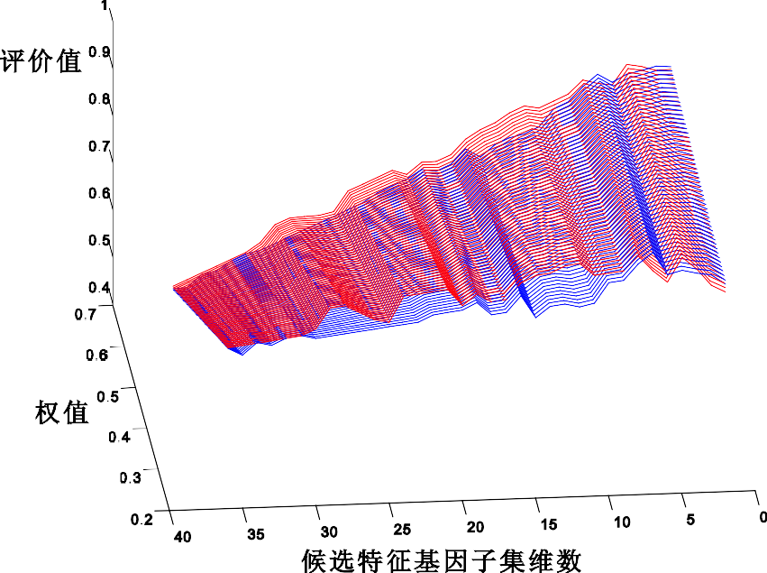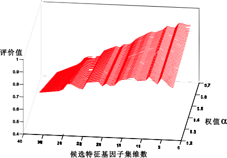 针对问题 2,根据样本数据,利用候选分类特征子集对 RBF 支持向量机进行训练, 采用“留一法”和“独立测试实验”对所建支持向量机进行测试。通过对测试结果的分析与评价,筛选出具有最佳分类效果的特征子集,作为基因“标签”。通过实验得到的基因“标签”为 7 维向量。