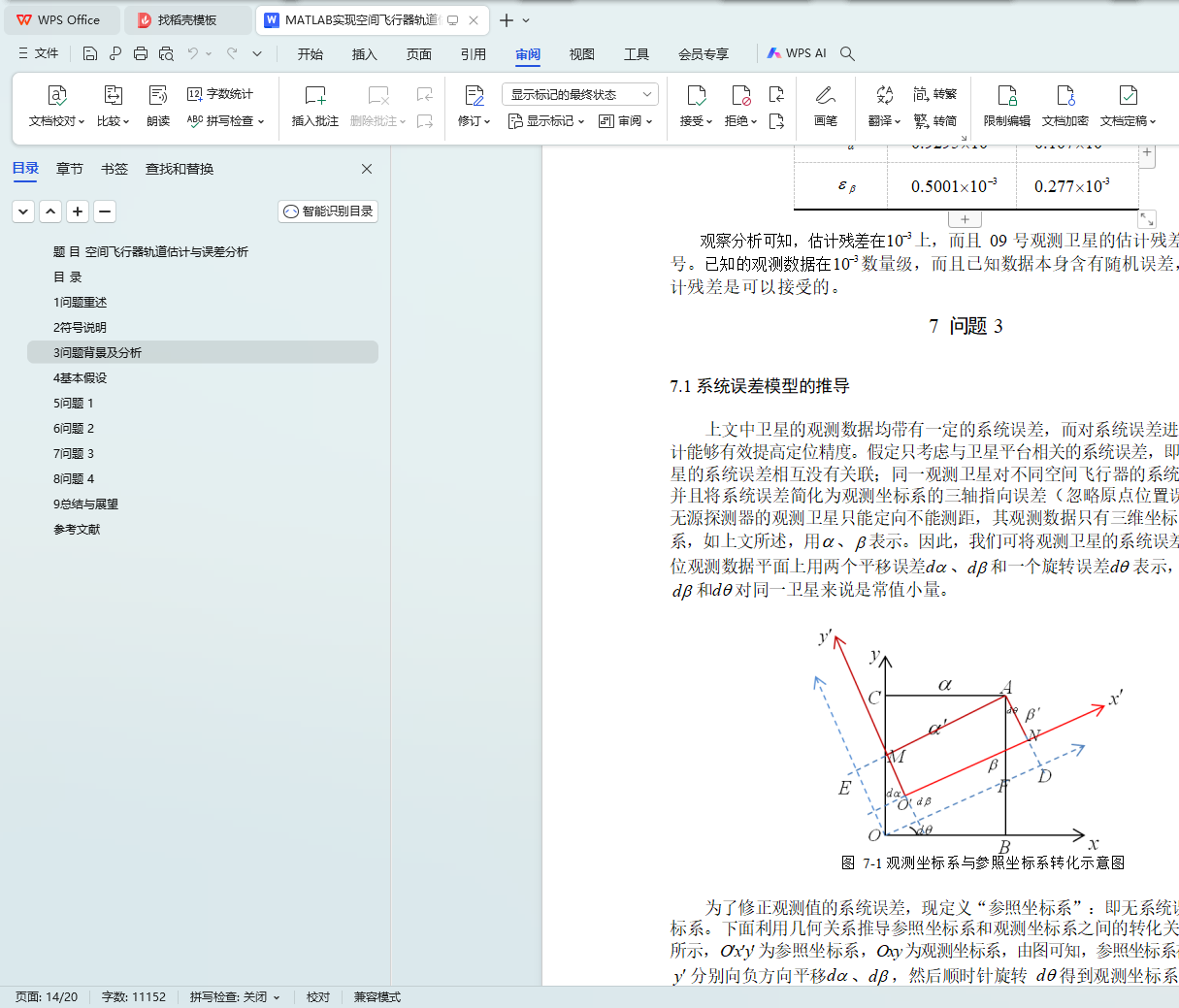 对于问题三,由于三轴指向误差表现为二维观测数据平面上的两个平移误差和一个旋转误差,分别设为da 、db 和dq 。将这些误差量叠加到观测量a 、b