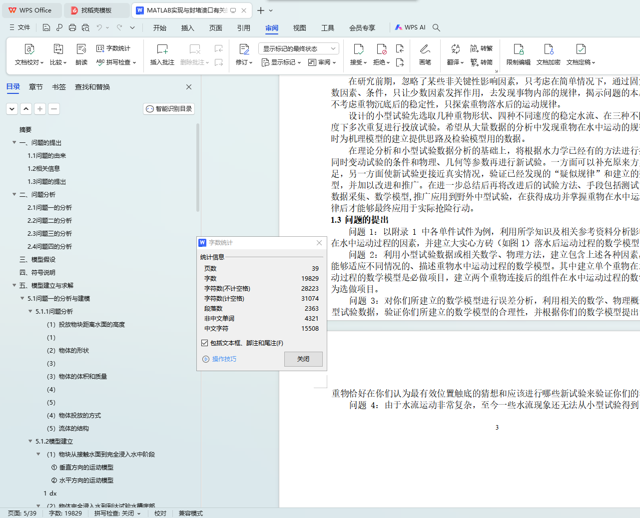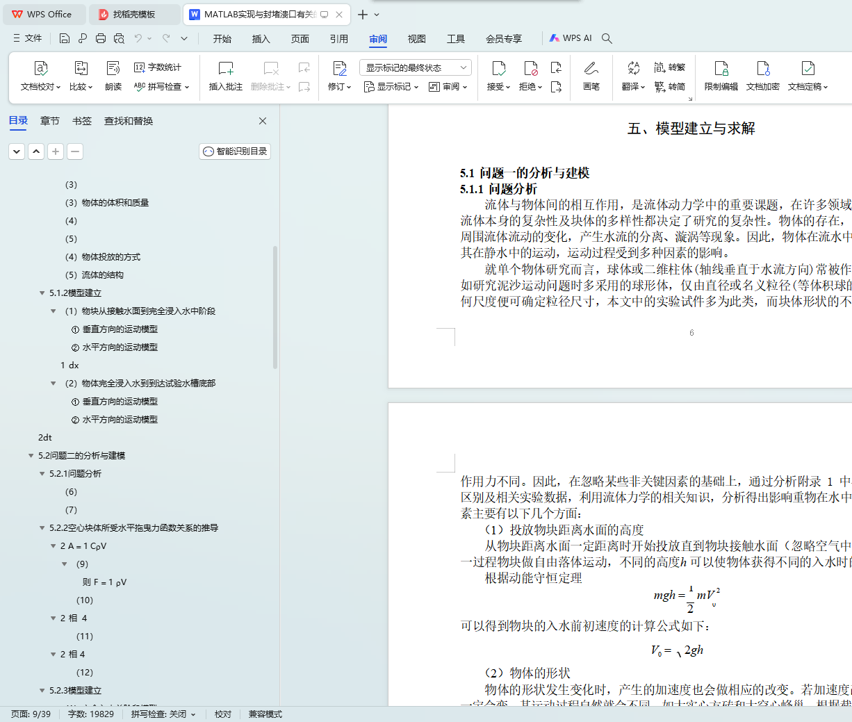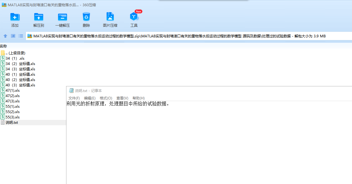 问题 2:在问题一的基础上,综合考虑各种相关因素,建立了能够适应不同情况的、描述重物水中运动过程的数学模型。在此模型的基础上,利用已知的试验数据和相关知识,分别建立了单个重物在水中运动过程的数学模型,详见 11~19 页。