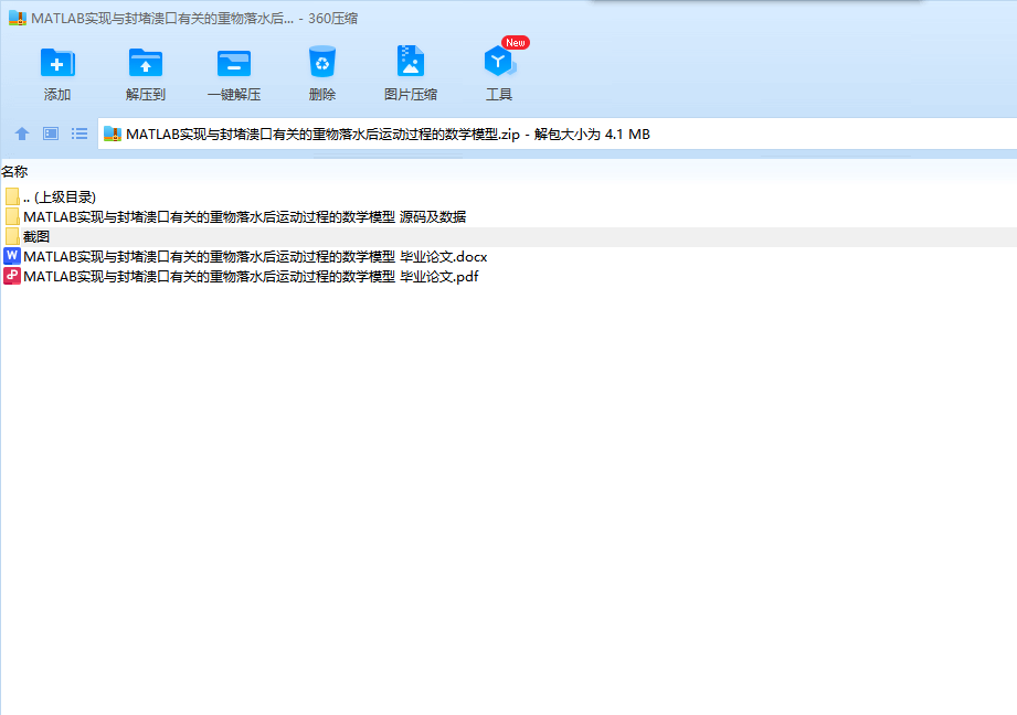题 目 与封堵溃口有关的重物落水后运动过程的数学模型
