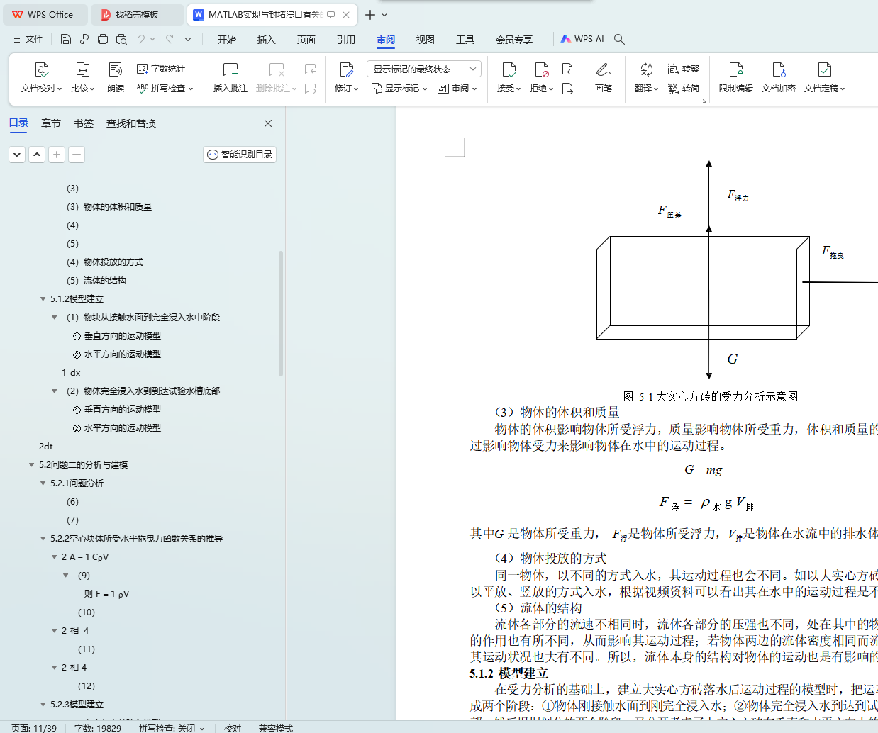 5.3.2 小实心方砖落水后运动模型求解